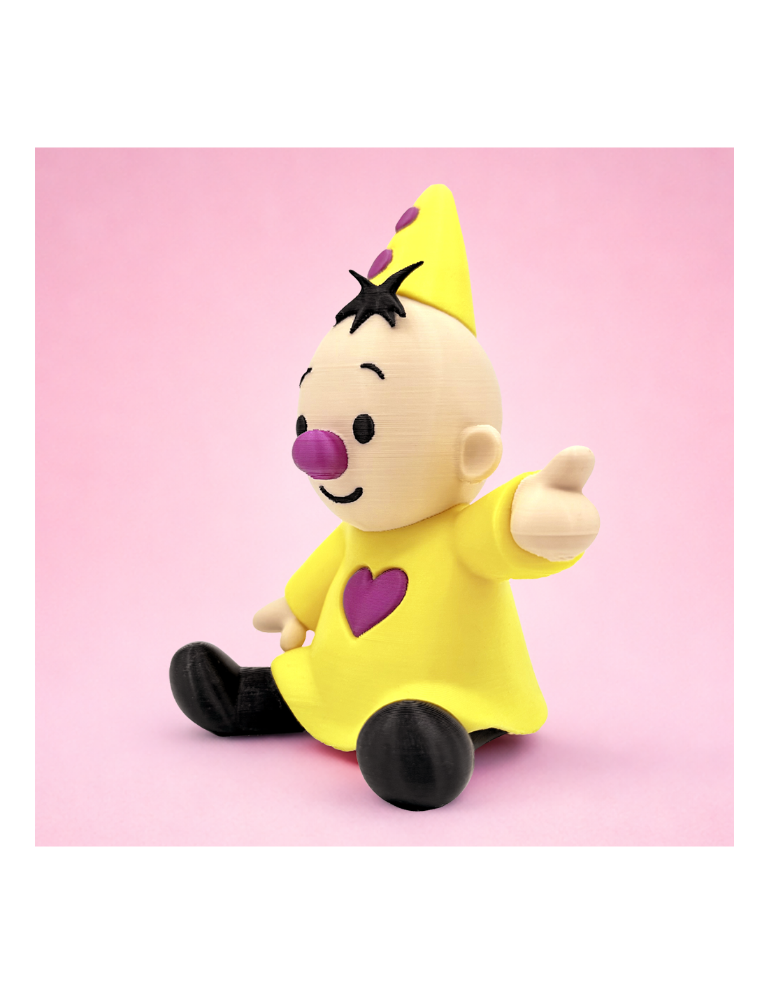 Deze vrolijke clown brengt meteen een glimlach. Met zijn zachte vormen, lieve uitstraling en het hartje op zijn pakje straalt hij plezier en vriendelijkheid uit. Een perfect decoratief figuurtje voor op de tijd tijdens kinderverjaardagen.