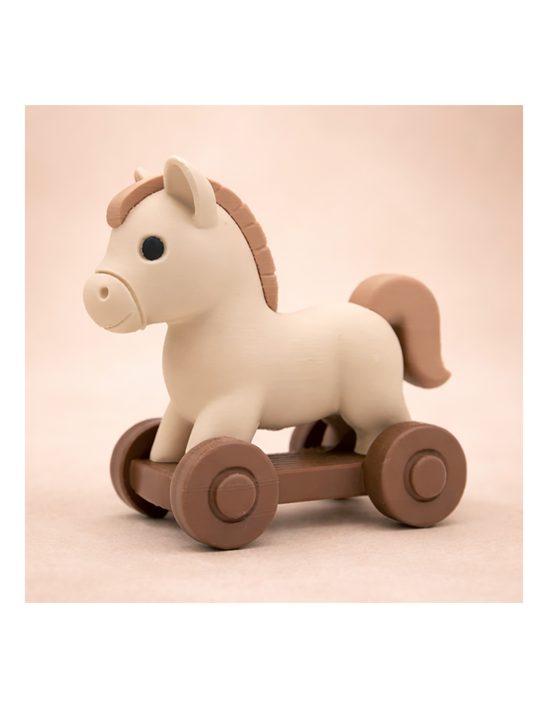Maak van elke taart een echte blikvanger met deze schattige 3D-geprinte taarttopper in de vorm van een paardje op wieltjes. Het zachte, minimalistische design en de stijlvolle uitstraling maken deze topper perfect voor een verjaardag, babyshower, kraamfeest of een paarden-themafeest.