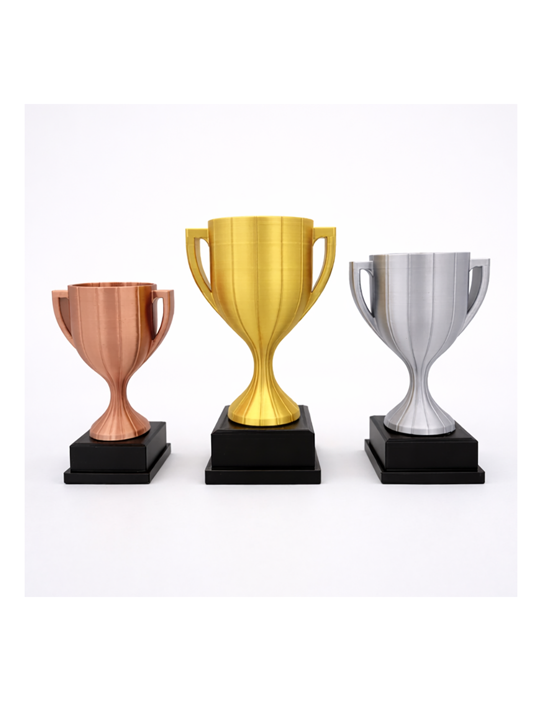 De taarttopper is strak vormgegeven met een klassieke trofeevorm en een moderne, hoogwaardige afwerking. Dankzij de zichtbare 3D-printdetails krijgt het ontwerp een eigentijdse en stijlvolle uitstraling. De verhoudingen en fijne lijnen zorgen voor een luxe look die perfect past bij feestelijke gelegenheden.