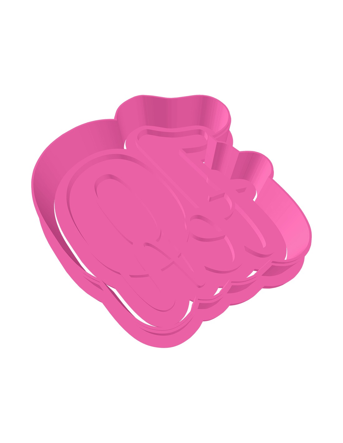 Uitsteker inclusief Stempel: Een uitsteker met daarbij een losse stempel. De donkere gedeeltes op de foto is het stempelgedeelte. De lichtroze gedeeltes betreft de complete stempel. Geschikt voor koekjesdeeg, fondant en marsepein. Diepte van de stempel 3 mm.