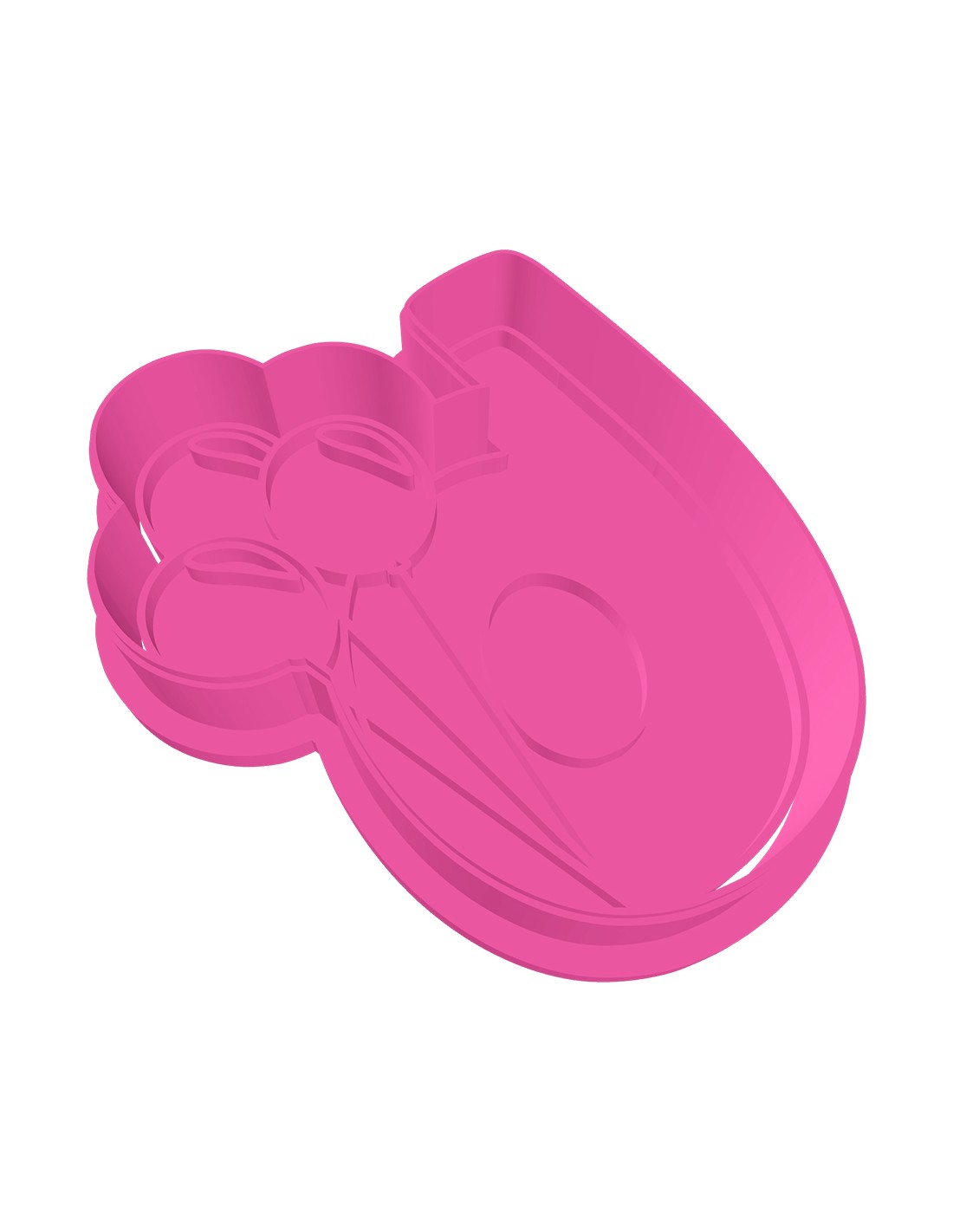 Uitsteker inclusief Stempel: Een uitsteker met daarbij een losse stempel. De donkere gedeeltes op de foto is het stempelgedeelte. De lichtroze gedeeltes betreft de complete stempel. Geschikt voor koekjesdeeg, fondant en marsepein. Diepte van de stempel 3 mm.