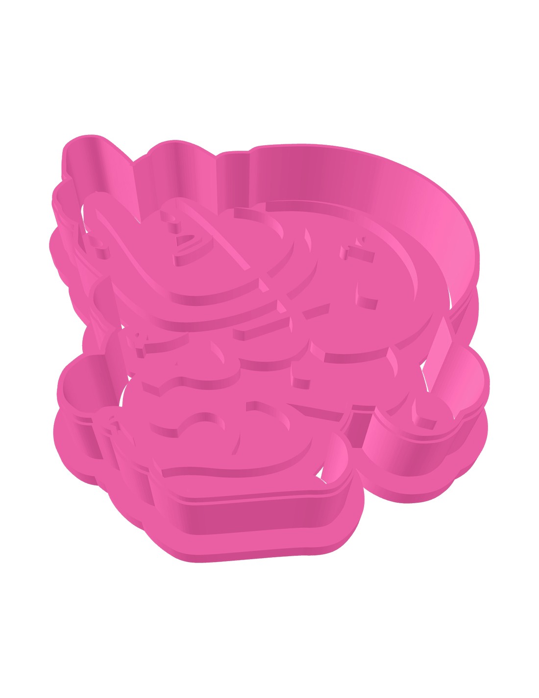 Uitsteker inclusief Stempel: Een uitsteker met daarbij een losse stempel. De donkere gedeeltes op de foto is het stempelgedeelte. De lichtroze gedeeltes betreft de complete stempel. Geschikt voor koekjesdeeg, fondant en marsepein. Diepte van de stempel 3 mm.