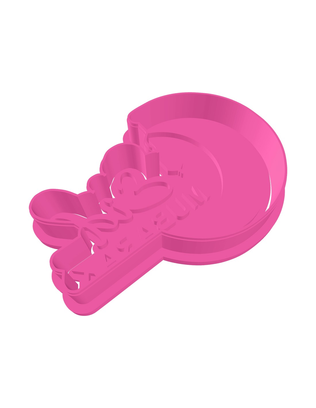 Uitsteker inclusief Stempel: Een uitsteker met daarbij een losse stempel. De donkere gedeeltes op de foto is het stempelgedeelte. De lichtroze gedeeltes betreft de complete stempel. Geschikt voor koekjesdeeg, fondant en marsepein. Diepte van de stempel 3 mm.