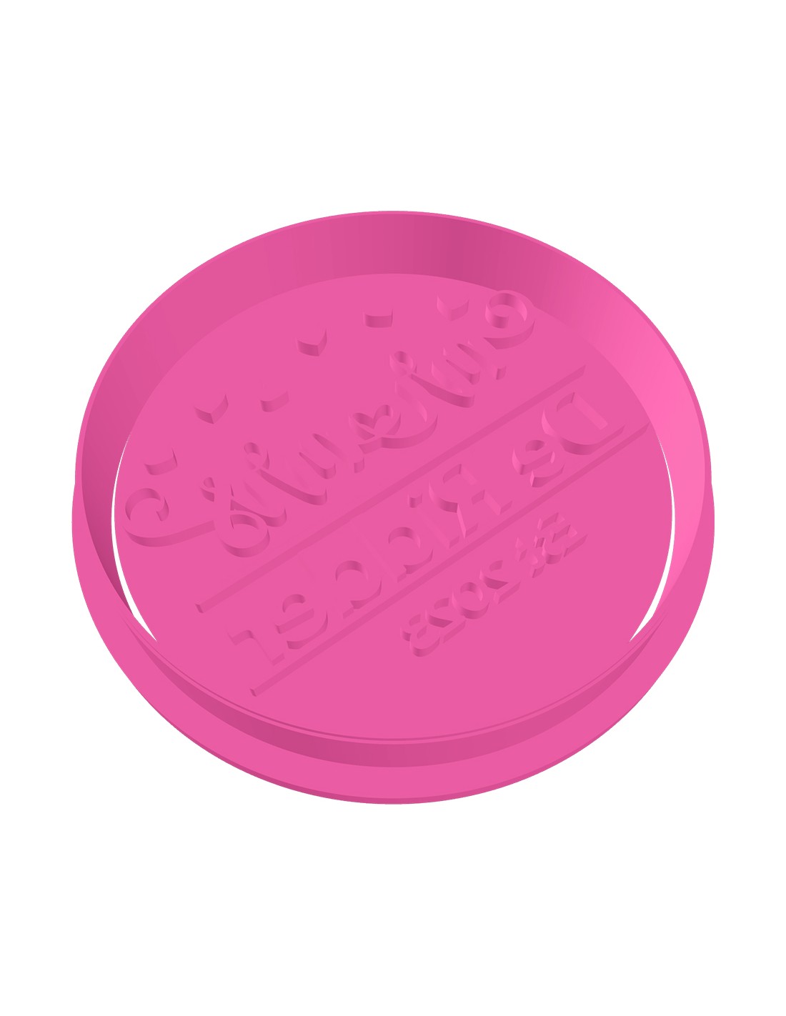 Stempel: De normale stempel is een zogenaamde emboss stempel. Dit betekend dat deze in de fondant drukt. Dit geeft een dieperliggende imprint. Handig als u de imprint nog in wil vullen met een kleur. Diepte van de stempel 3 mm. Deze stempel wordt met onze 3D printer geprint.