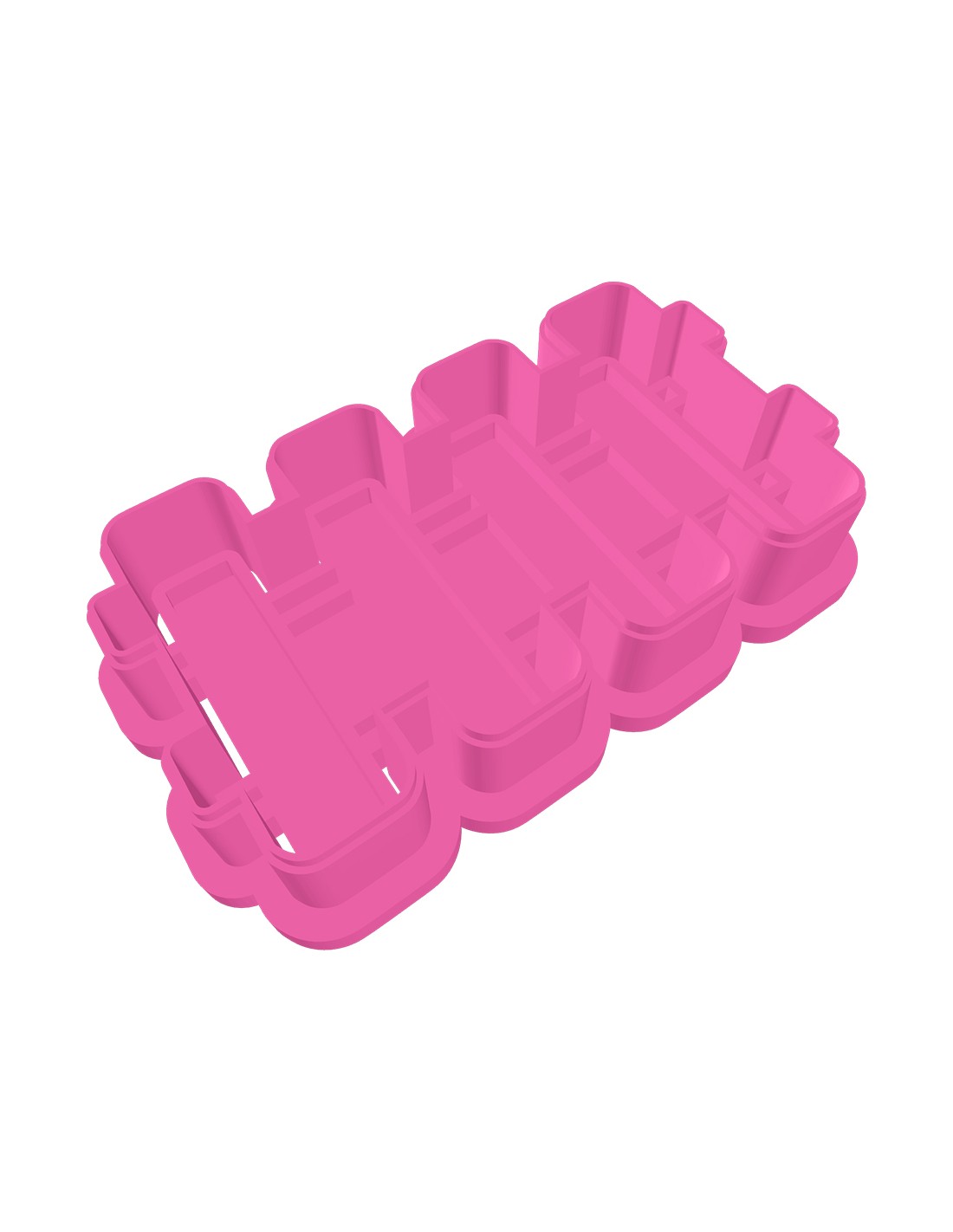 Uitsteker inclusief Stempel: Een uitsteker met daarbij een losse stempel. De donkere gedeeltes op de foto is het stempelgedeelte. De lichtroze gedeeltes betreft de complete stempel. Geschikt voor koekjesdeeg, fondant en marsepein. Diepte van de stempel 3 mm.