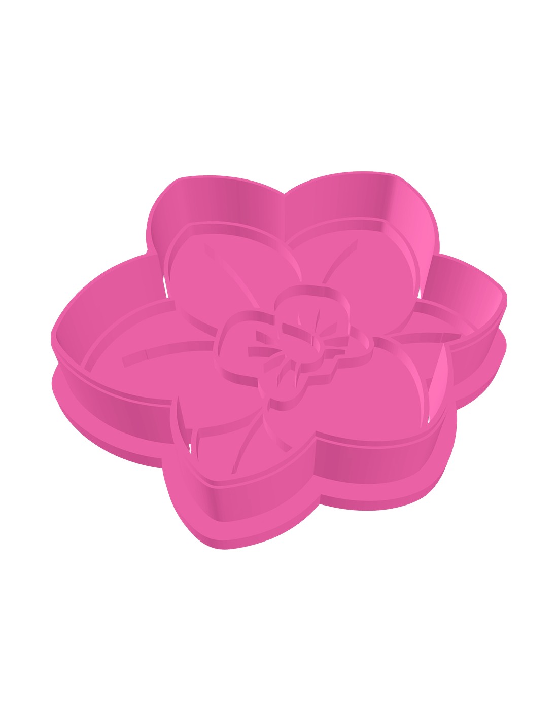 Uitsteker inclusief Stempel: Een uitsteker met daarbij een losse stempel. De donkere gedeeltes op de foto is het stempelgedeelte. De lichtroze gedeeltes betreft de complete stempel. Geschikt voor koekjesdeeg, fondant en marsepein. Diepte van de stempel 3 mm.