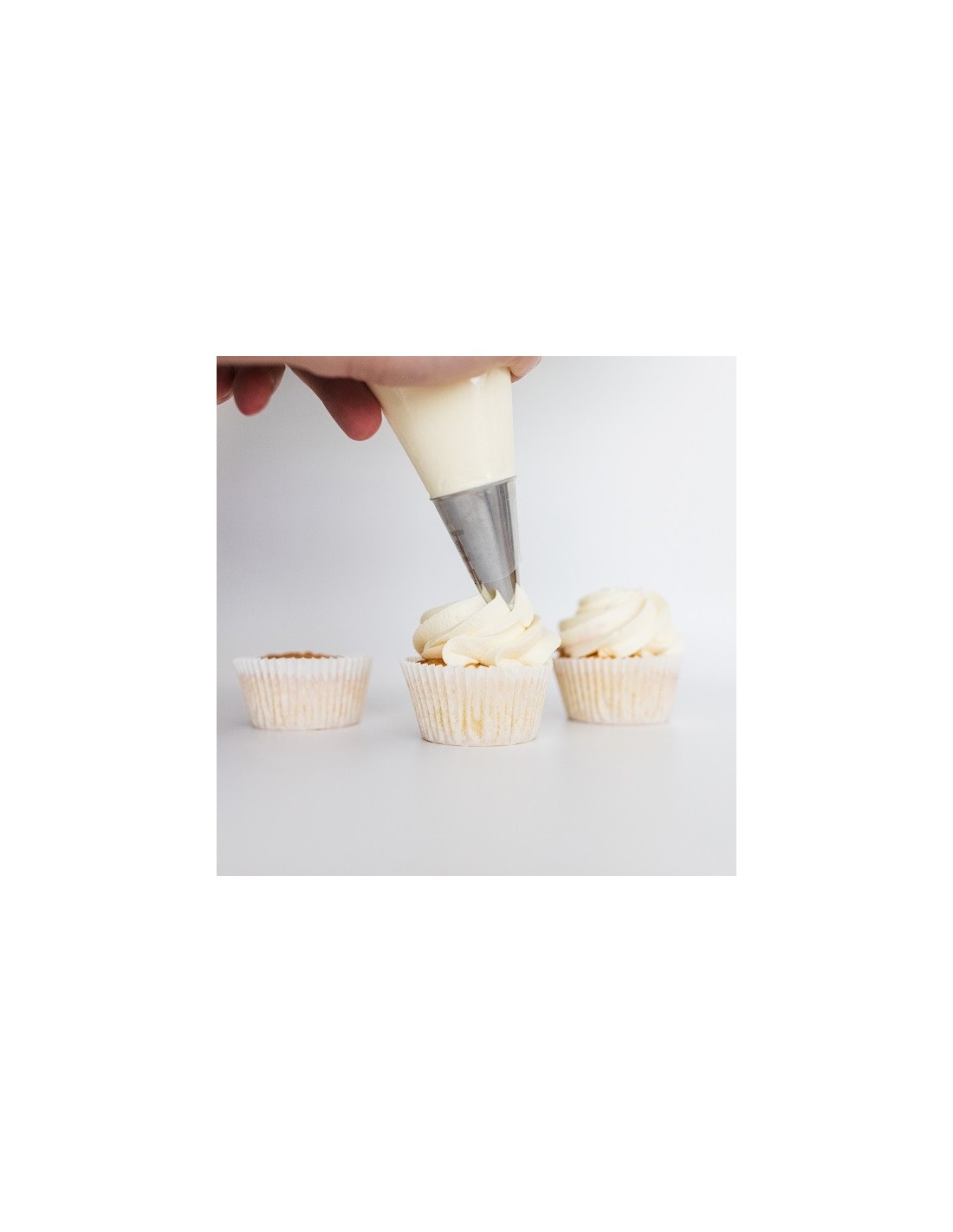 Bovengenoemde portie is goed voor het afsmeren en vullen van één taart van 20cm of het decoreren van circa 12 cupcakes.