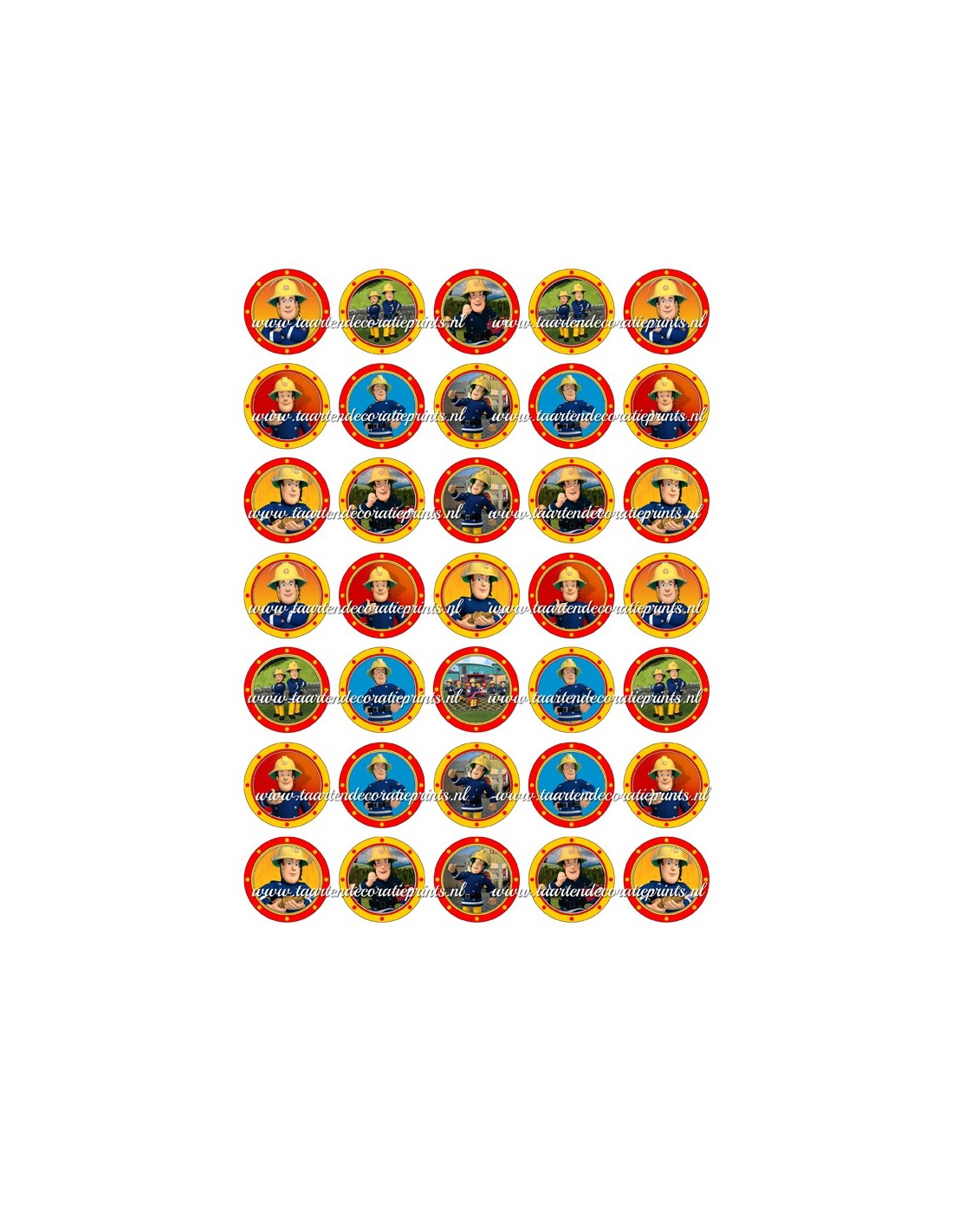 35 afbeeldingen van Brandweerman Sam op een formaat van 3,5cm doorsnede.