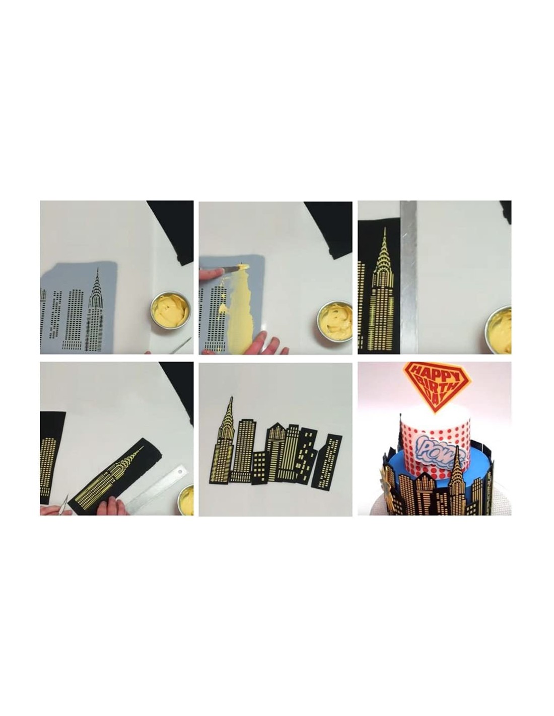 Gebruik het stencil met royal icing, cookie icing, suikerbakkerspoeder, buttercream, gesmolten chocolade, cacao poeder, lustre dusts, metallic verf of voedsel kleurstof om indrukwekkende decoratieve effecten te creëren. Houd de stencil in de juiste positie, verspreid, strooi of spons het materiaal over het stencil om het ontwerp aan te brengen op cupcakes, koekjes, taarten en nog veel meer.