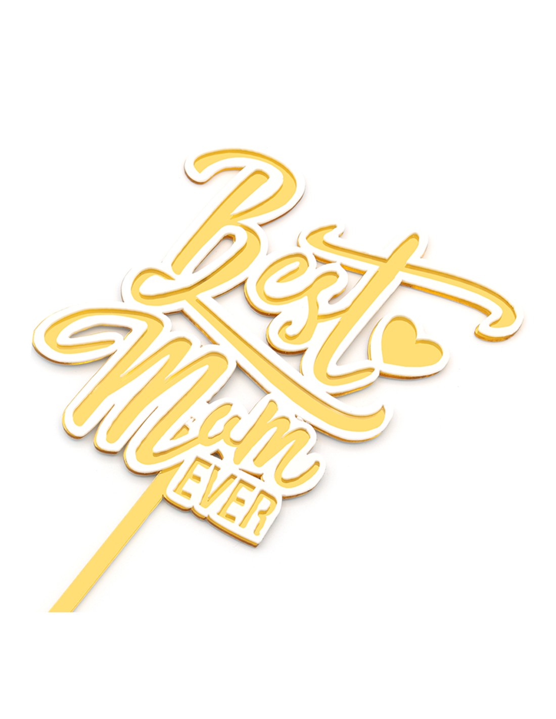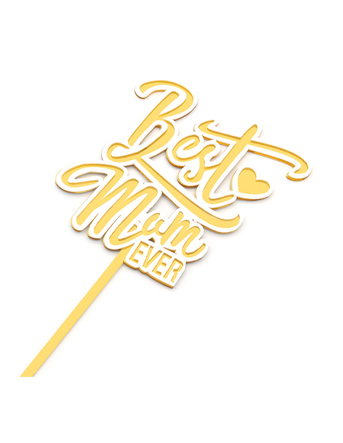 Acryl Cake Topper Best Mom Ever is een perfecte versiering voor je moederdagtaart. Voedselveilig materiaal waardoor de topper direct in de taart gestoken kan worden.