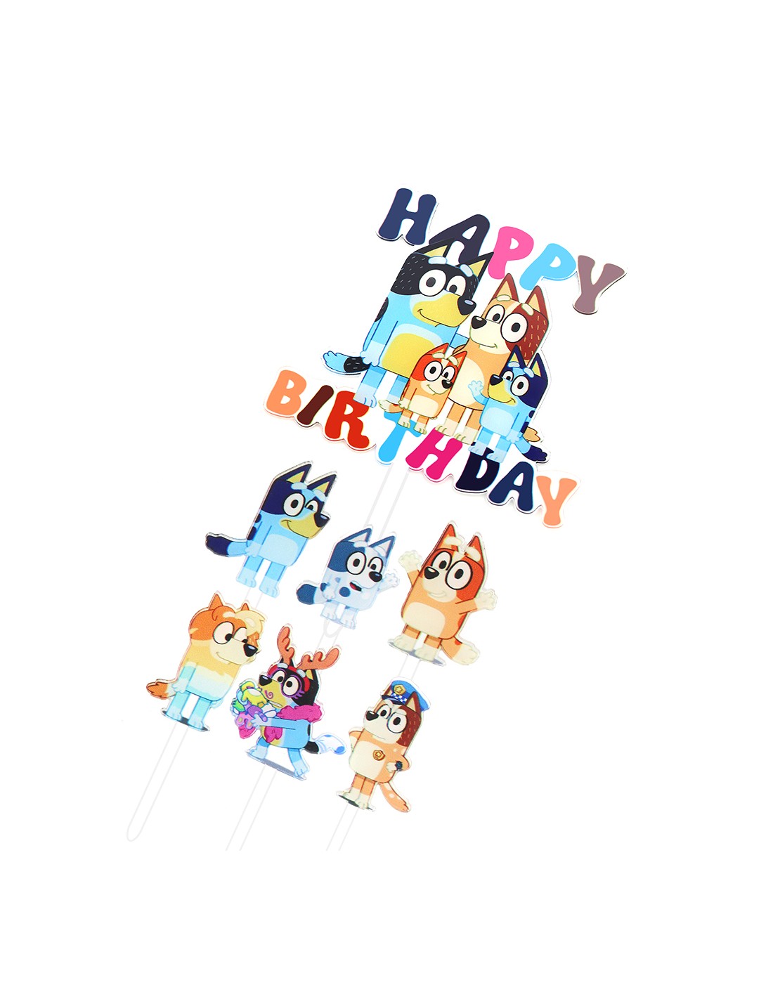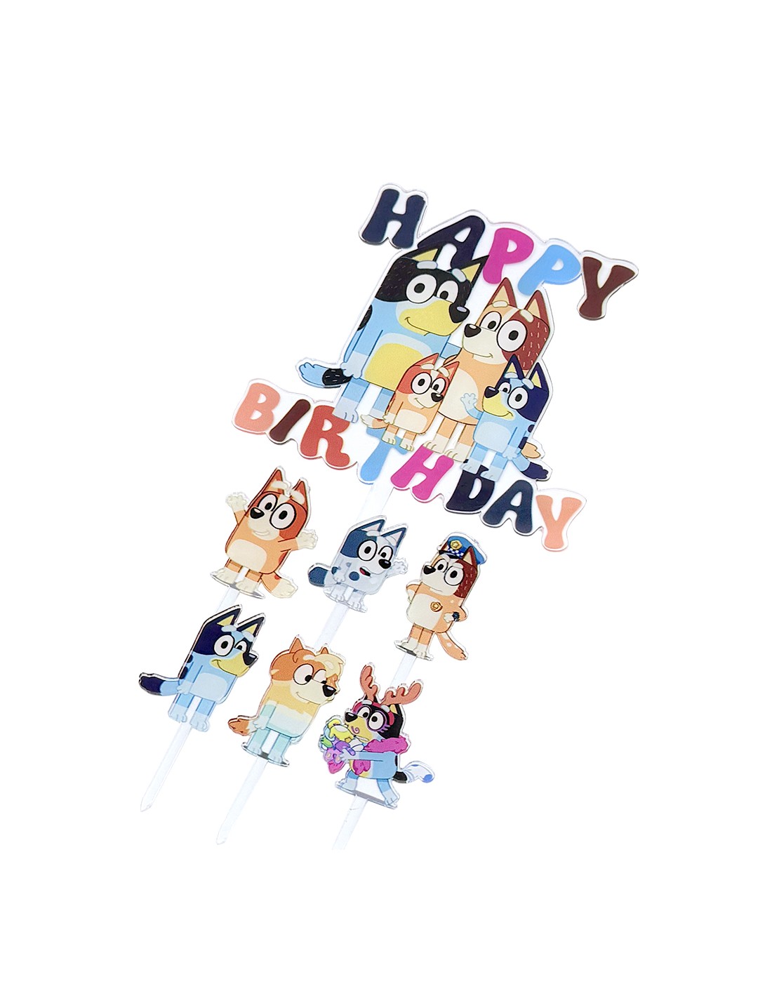 De Acryl Cake Topper Bluey is een perfecte versiering voor je verjaardagstaart. De basis is gemaakt van lasergesneden acryl waar de afbeeldingen op geprint zijn. Voedselveilig materiaal waardoor de topper direct in de taart gestoken kan worden.