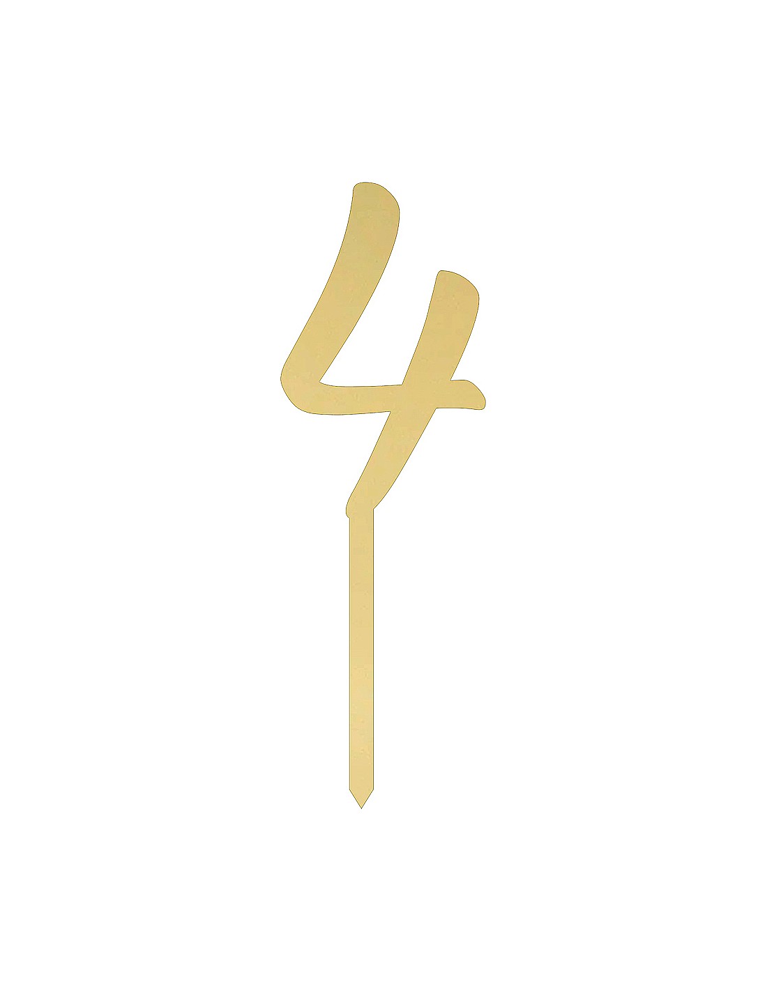 Cake Topper Cijfer 4 gemaakt van extra hoge kwaliteit spiegelend acryl van maar liefst 3mm dik. Voedselveilig materiaal waardoor de topper direct in de taart gestoken kan worden. Lange pootje waardoor deze een mooi effect op de taart geeft.