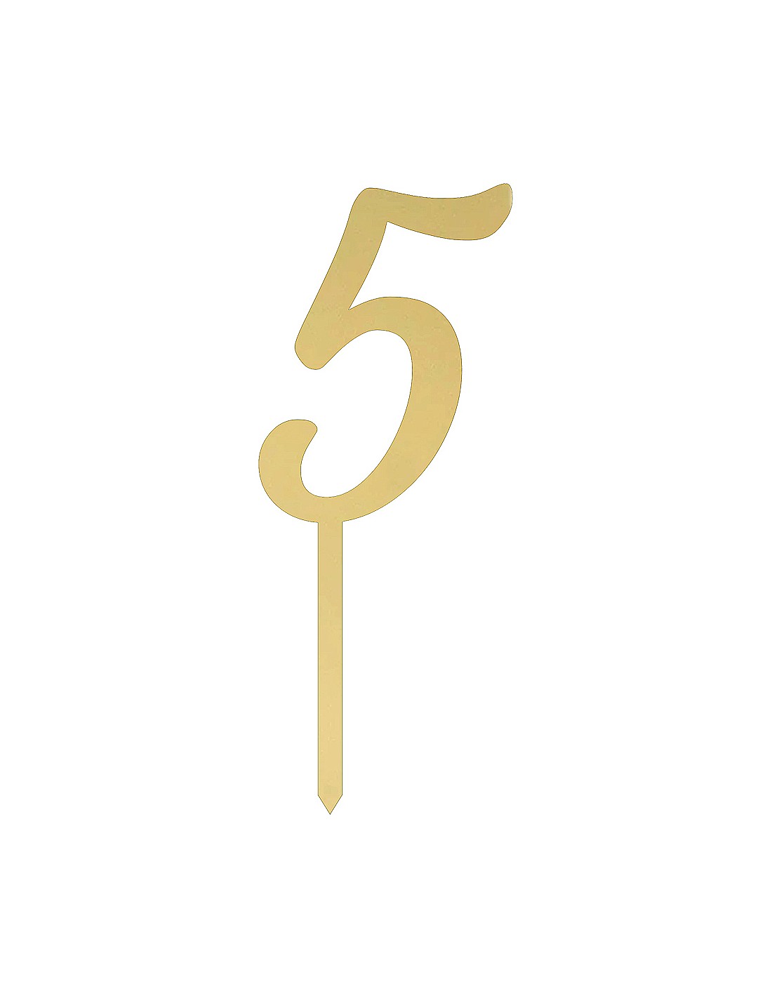 Cake Topper Cijfer 5 gemaakt van extra hoge kwaliteit spiegelend acryl van maar liefst 3mm dik. Voedselveilig materiaal waardoor de topper direct in de taart gestoken kan worden. Lange pootje waardoor deze een mooi effect op de taart geeft.