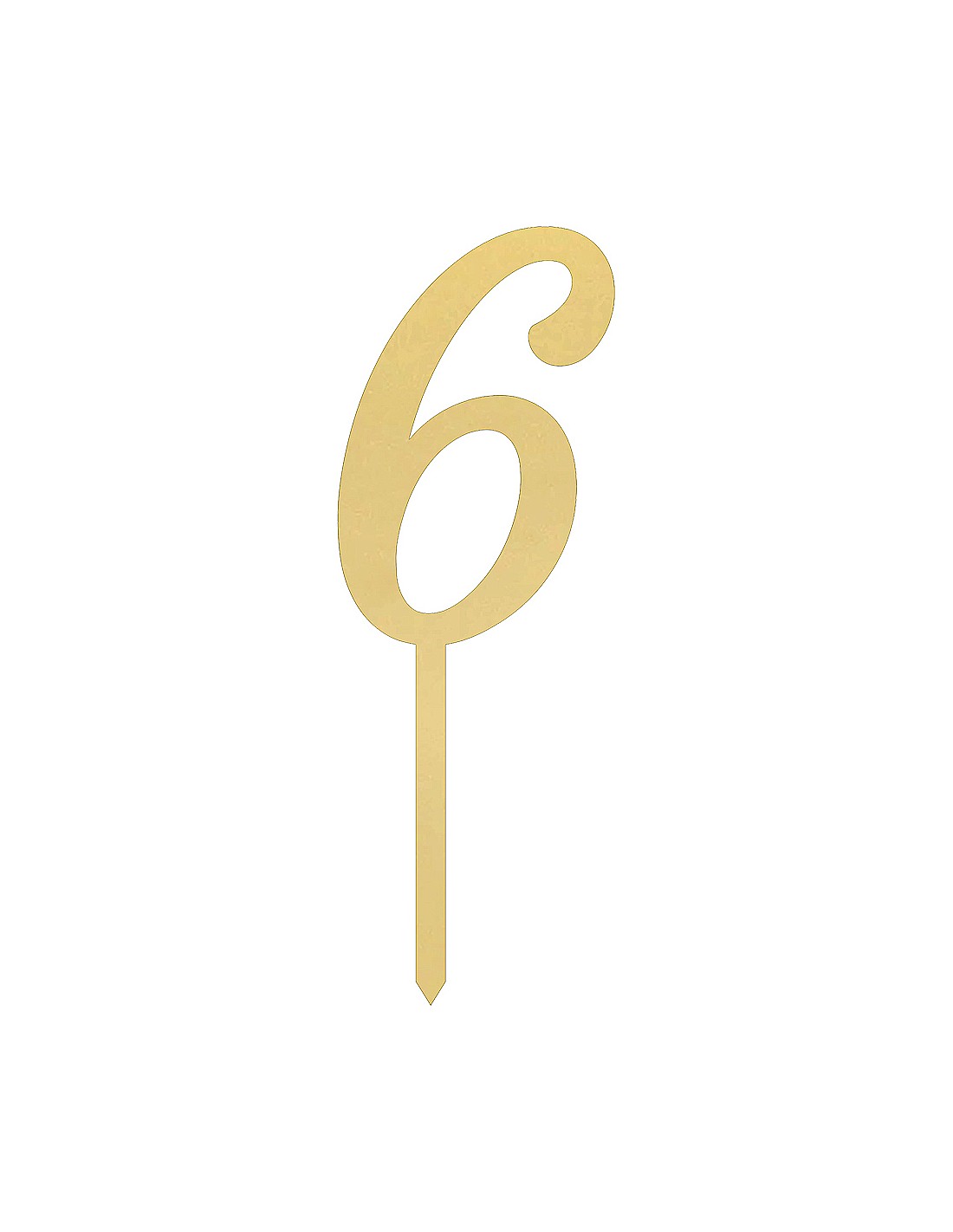 Cake Topper Cijfer 6 gemaakt van extra hoge kwaliteit spiegelend acryl van maar liefst 3mm dik. Voedselveilig materiaal waardoor de topper direct in de taart gestoken kan worden. Lange pootje waardoor deze een mooi effect op de taart geeft.