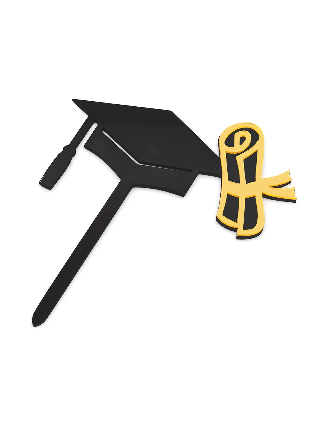 Mini Acryl Cake Topper Hoed is een perfecte versiering voor je geslaagd taart. Voedselveilig materiaal waardoor de topper direct in de taart gestoken kan worden.