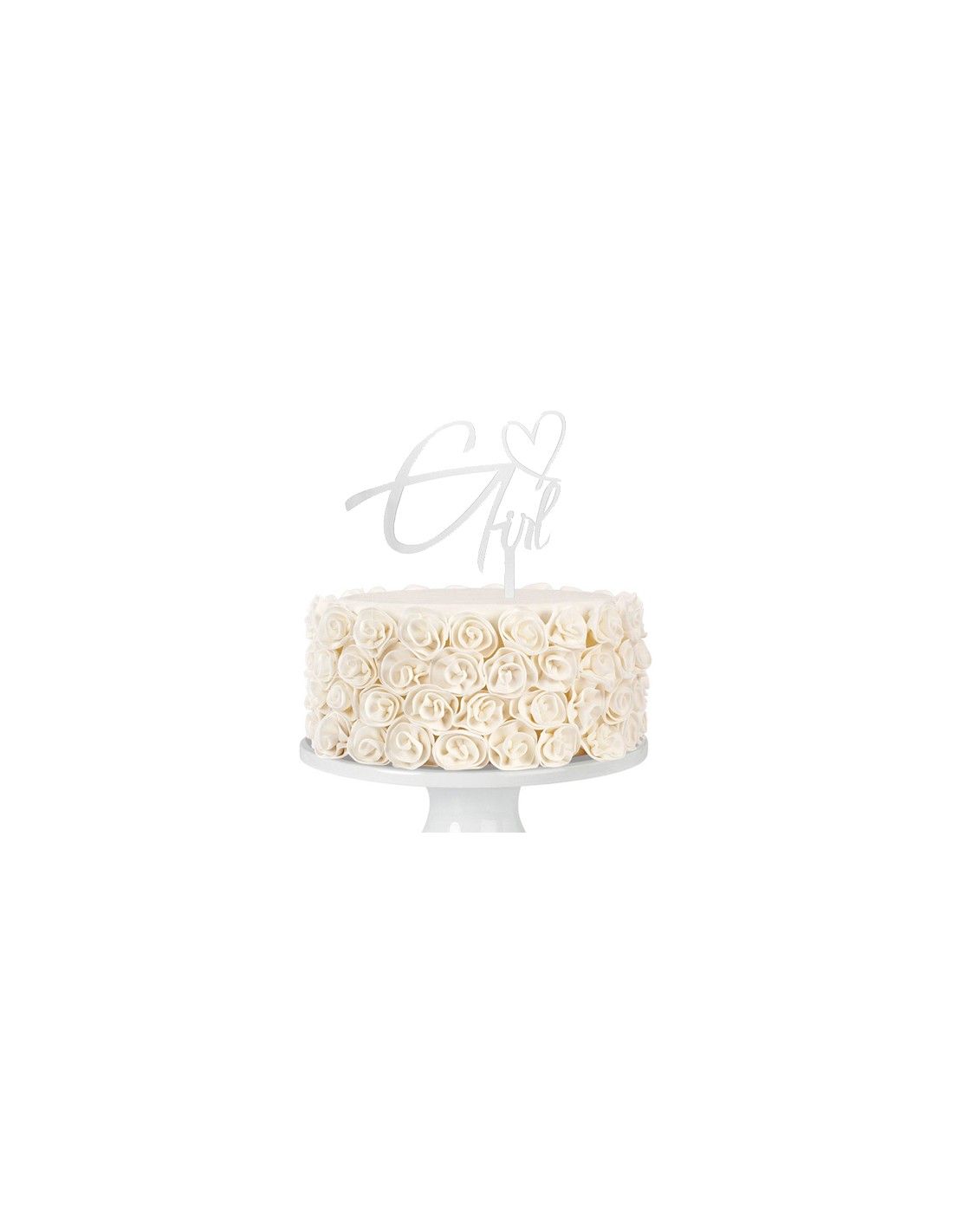 Acryl Cake Topper Girl Mirror Silver is een perfecte versiering voor elke gender reveal of babytaart. Voedselveilig materiaal waardoor de topper direct in de taart gestoken kan worden.