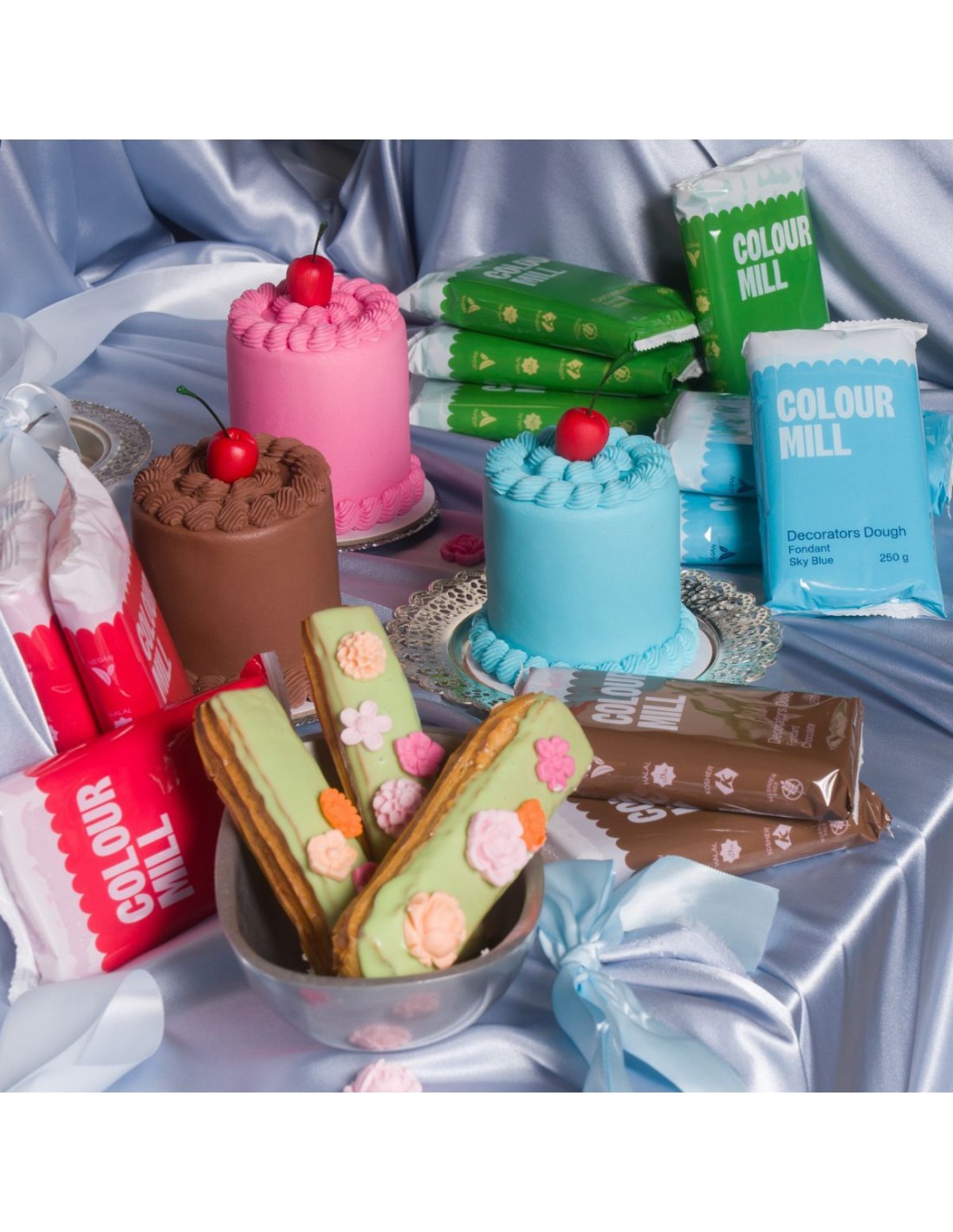 Bedek taarten, cupcakes en koekjes of maak prachtige decoraties met de Colour Mill Decorator’s Dough! Deze Australische fondant rolt moeiteloos uit en drapeert prachtig over je creaties. Een gladde, betrouwbare fondant die met je samenwerkt in plaats van tegen je. Ideaal voor het bekleden van taarten en cupcakes en voor het maken van decoraties en meer. Rolt soepel uit en drapeert prachtig voor een perfect resultaat.
