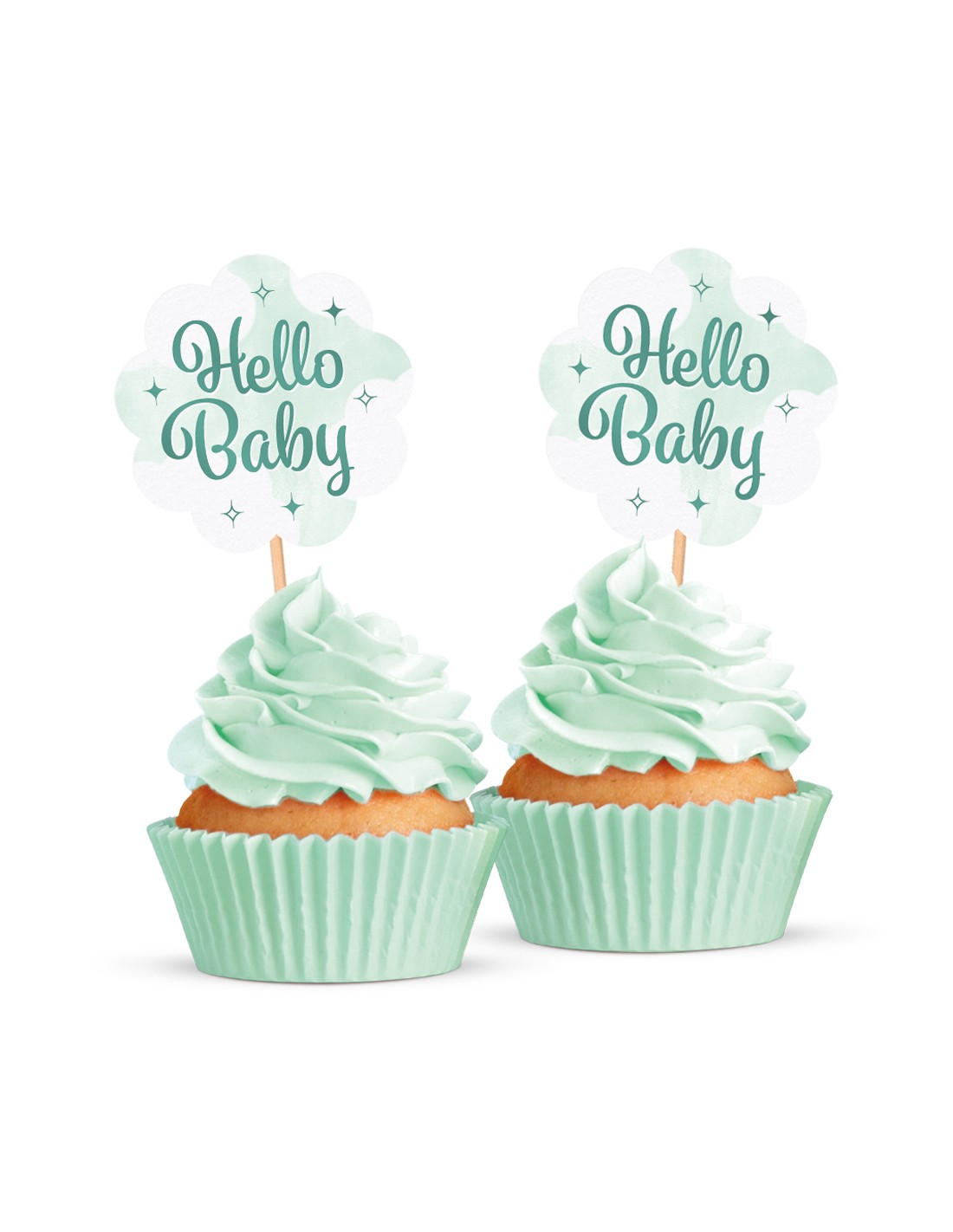 Set van 12 cupcake toppers in baby thema.