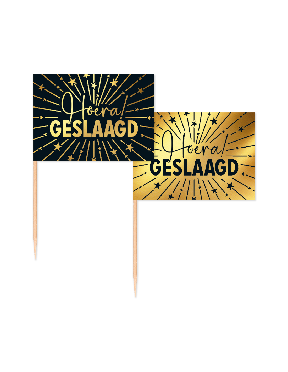 Maak elk feestje nét dat beetje specialer met deze stijlvolle cupcake prikkers. Met de feestelijke tekst “Hoera Geslaagd” zijn ze perfect voor het vieren van een diploma, verjaardag, babyshower, jubileum of elke andere mijlpaal die het waard is om in het zonnetje te zetten.