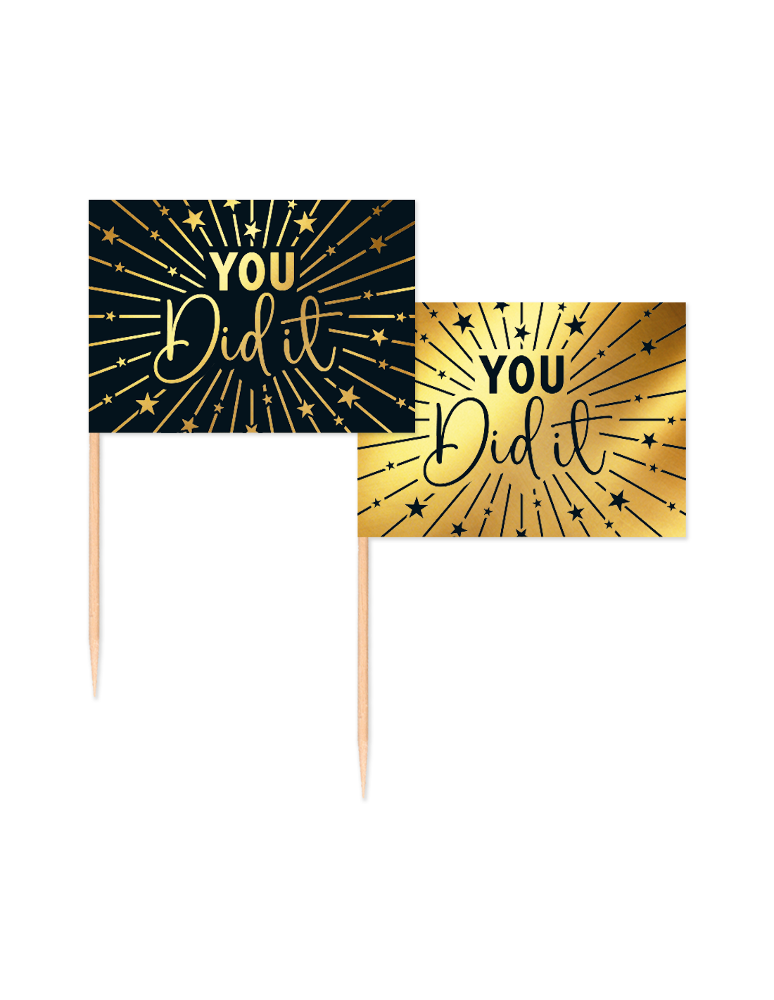 Maak elk feestje nét dat beetje specialer met deze stijlvolle cupcake prikkers. Met de feestelijke tekst “You Did It” zijn ze perfect voor het vieren van een diploma, verjaardag, babyshower, jubileum of elke andere mijlpaal die het waard is om in het zonnetje te zetten.