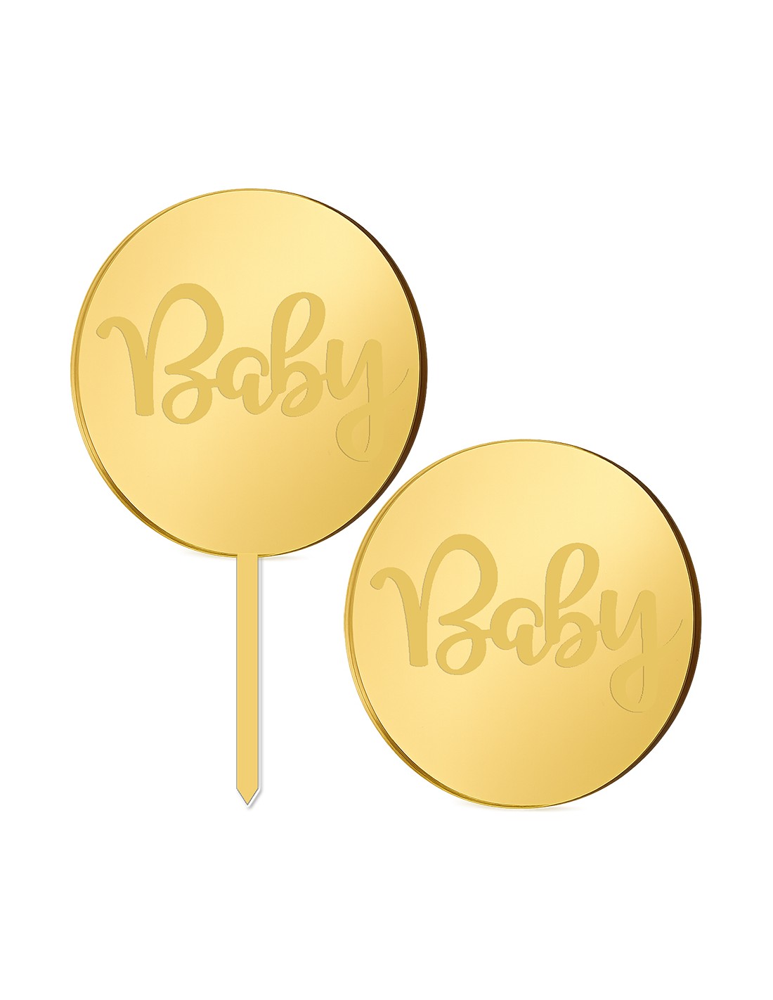 Cupcaketoppers Baby. De tekst wordt gegraveerd in het rondje.