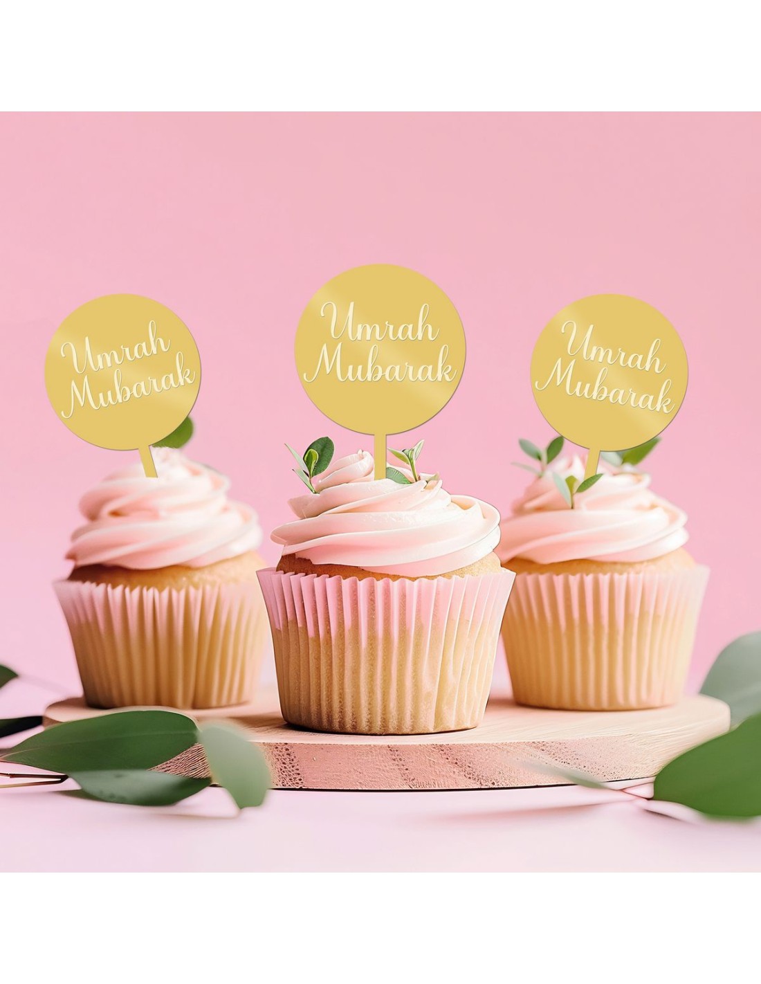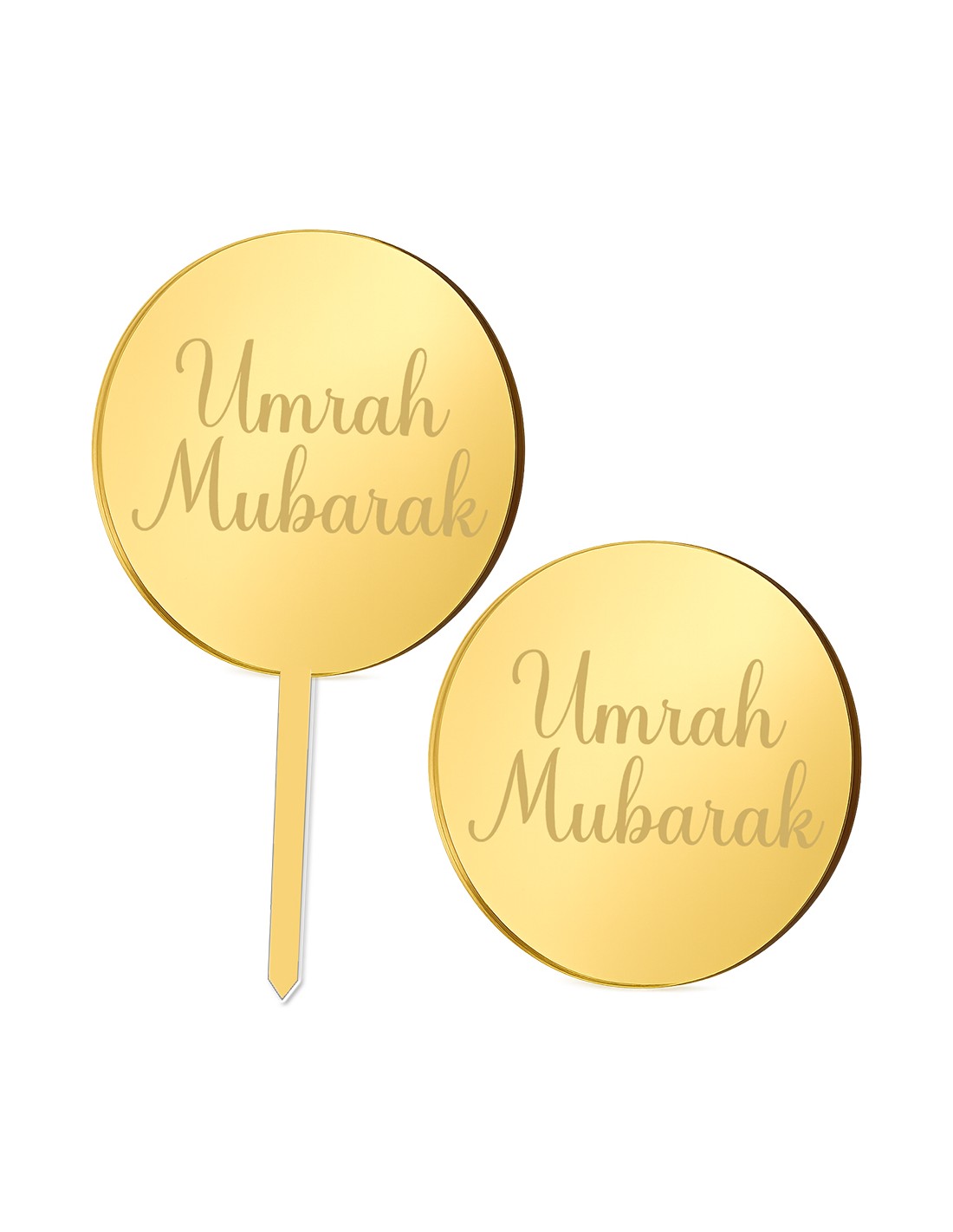 Cupcake topper umrah mubarak. De tekst wordt gegraveerd.