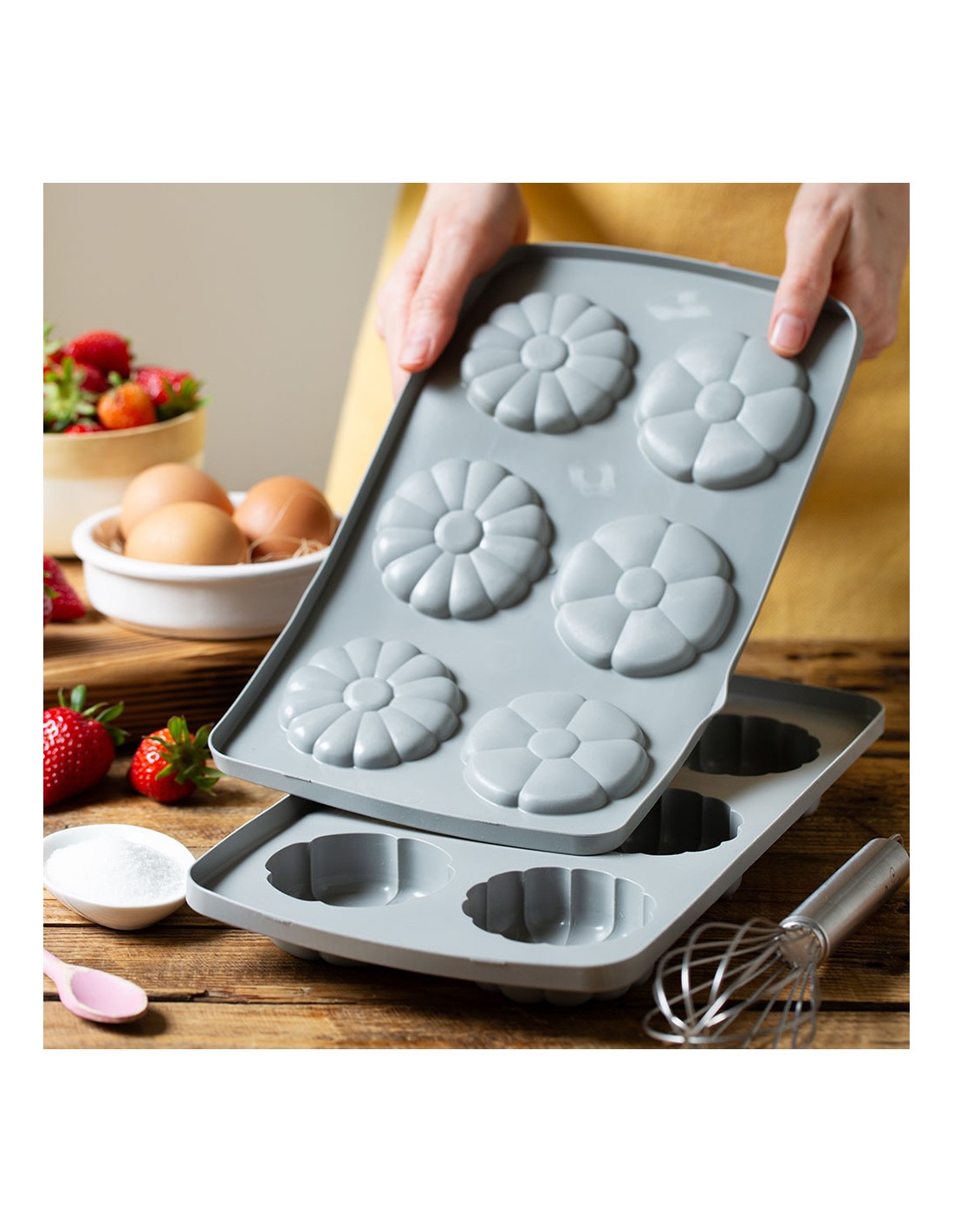 Deze Duo Flower Mold set bestaat uit 2 siliconen vormen verschillende dieptes, ideaal voor zoete en hartige bereidingen. Gemaakt van 100% platina siliconen*, bestand tegen zowel koken als invriezen.