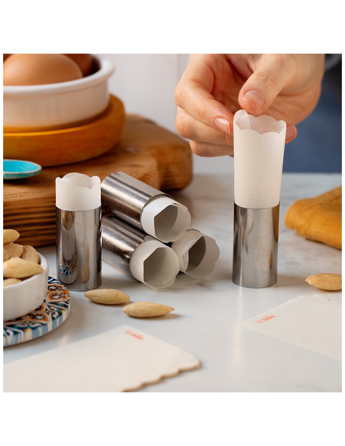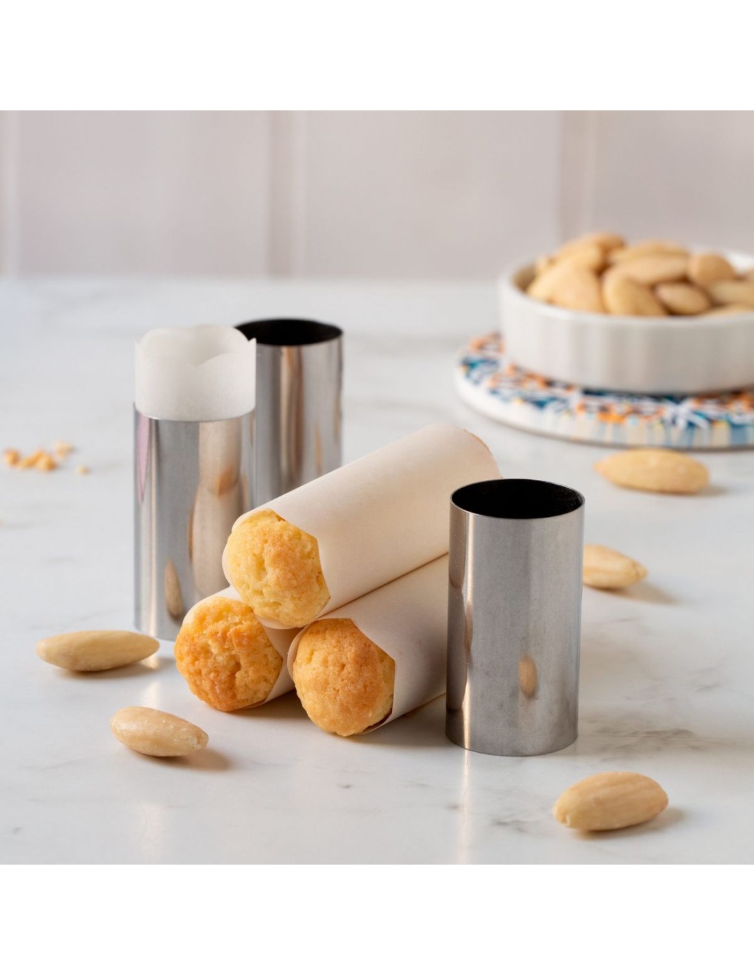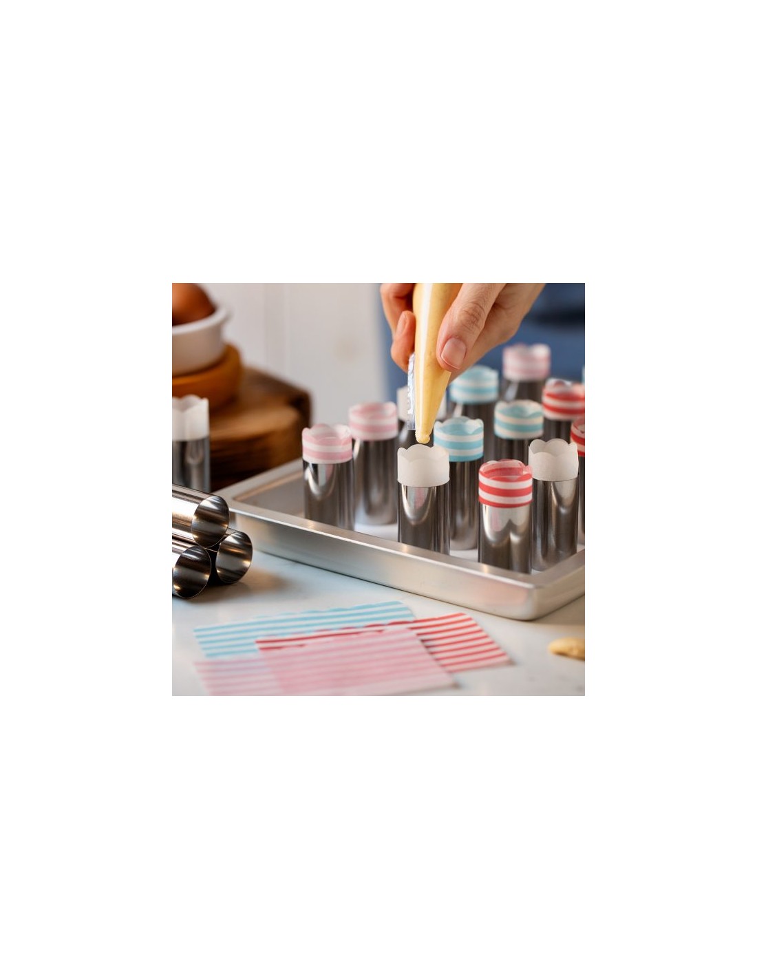 Roestvrijstalen vormen, ideaal voor het maken van traditionele Italiaanse desserts of eenvoudige cilindervormige baksels De set bevat 24 patroonvormen.