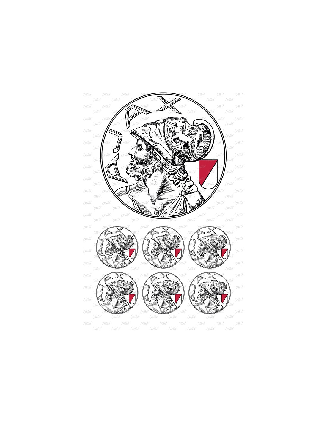 Een afbeelding van Ajax op een formaat van 15cm doorsnede. U ontvangt extra 6 kleine afbeeldingen van 5cm doorsnede.