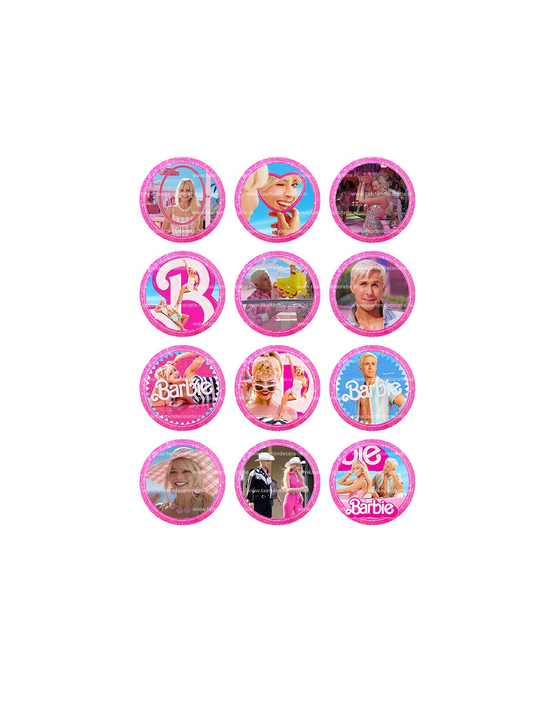 12 afbeeldingen van Barbie op een formaat van 6cm doorsnede.