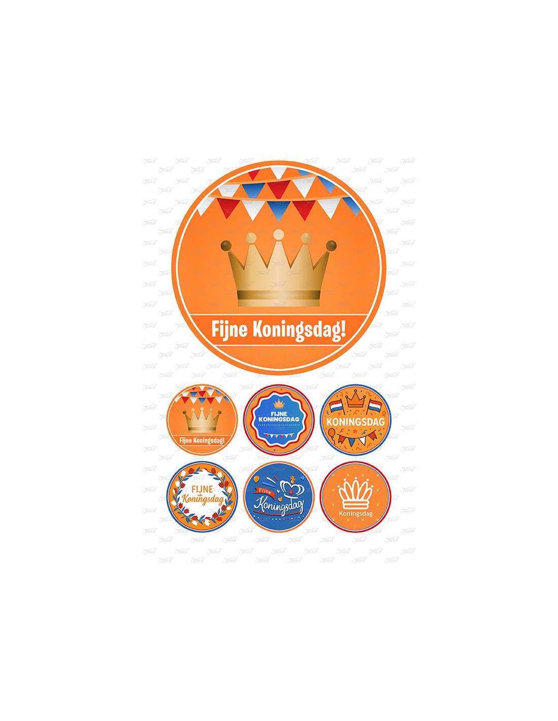 Een koningsdag afbeelding op een formaat van 15cm doorsnede. U ontvangt extra 6 kleine afbeeldingen van 5cm doorsnede.