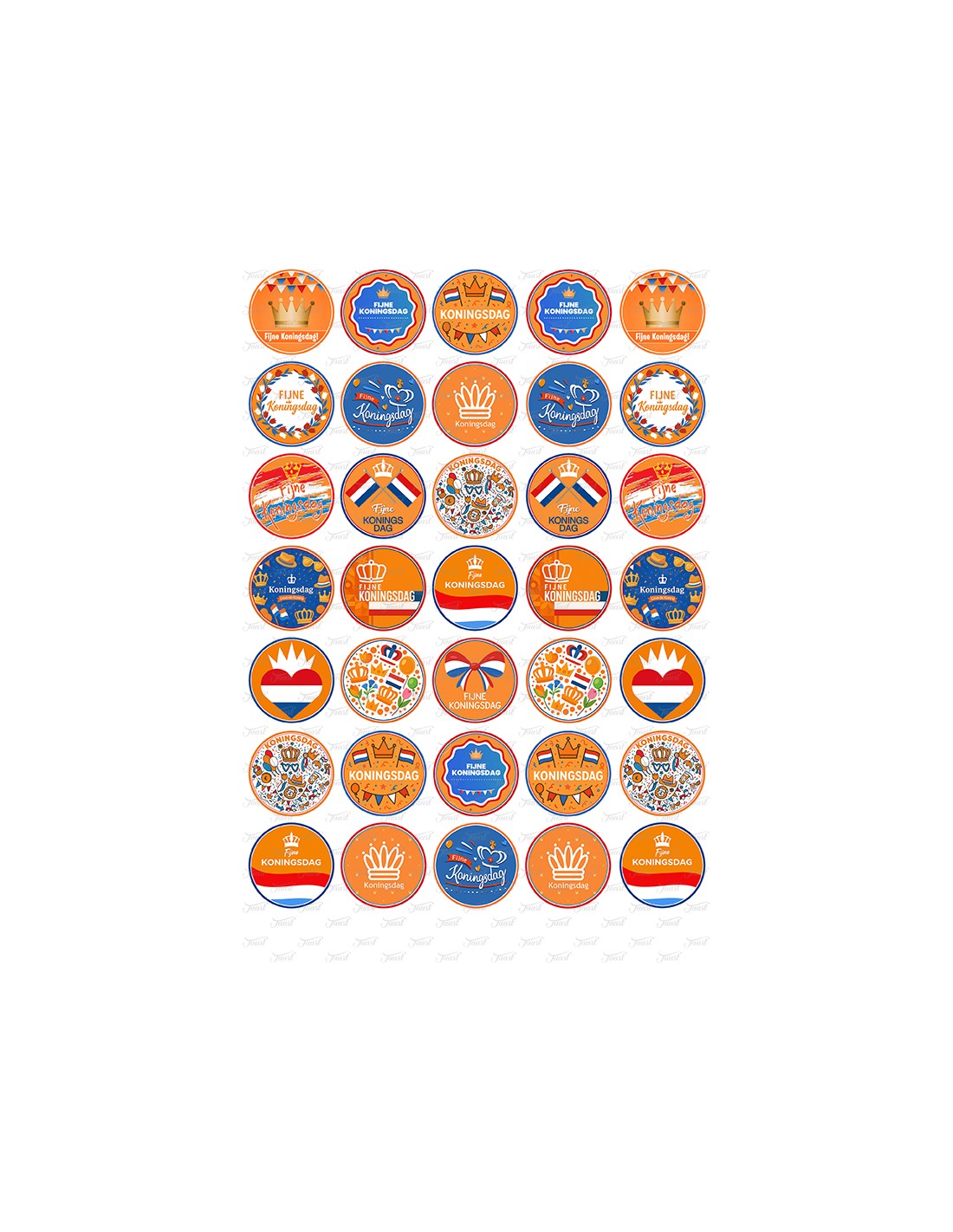 35 koningsdag afbeeldingen op een formaat van 3,5 cm doorsnede. Dit is de ideale maat voor mini cupcakes.