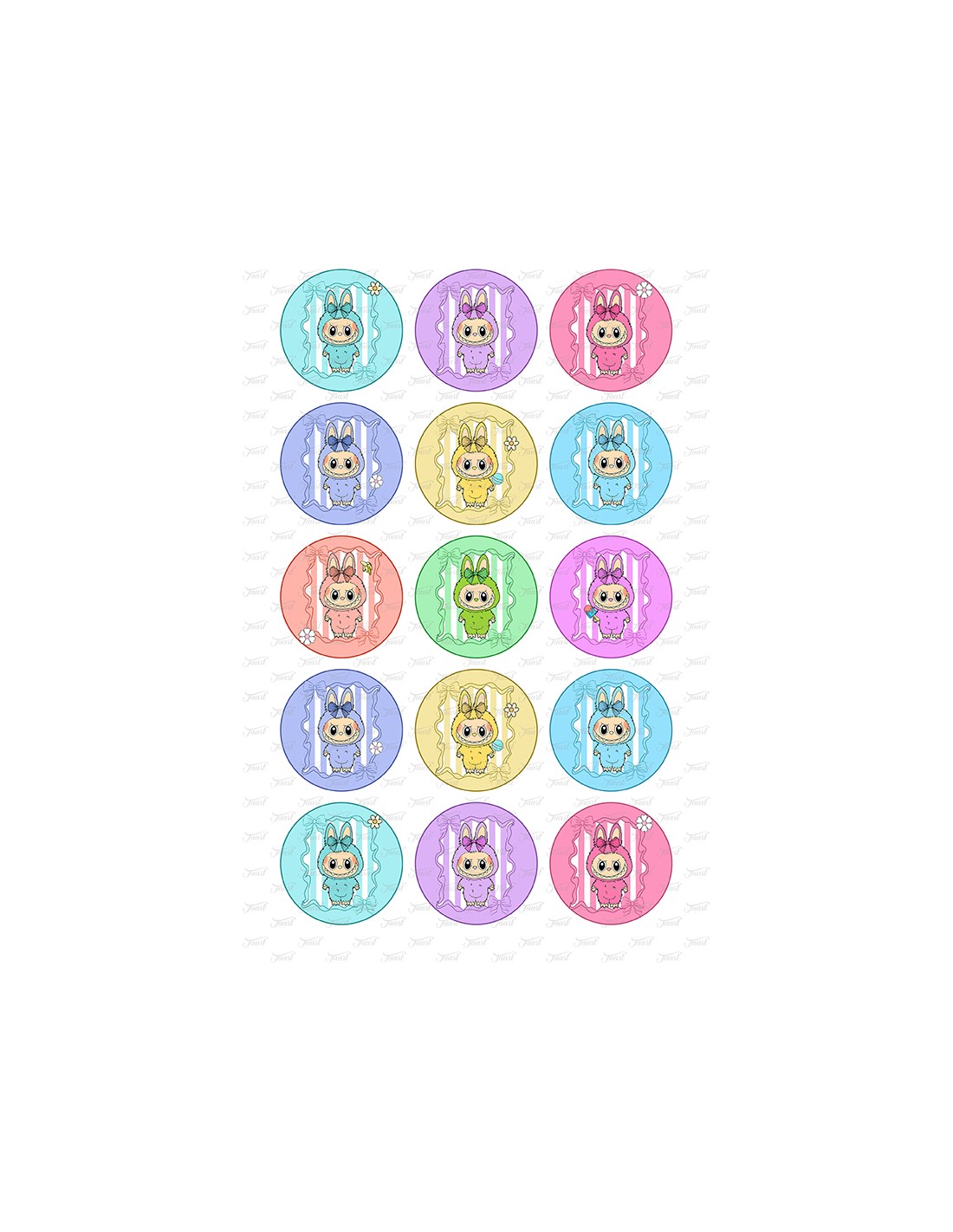 15 Labubu afbeeldingen op een formaat van 5cm doorsnede.