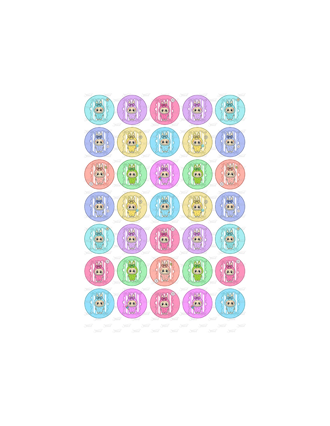 35 Labubu afbeeldingen op een mini cupake formaat van 3,5 cm doorsnede.