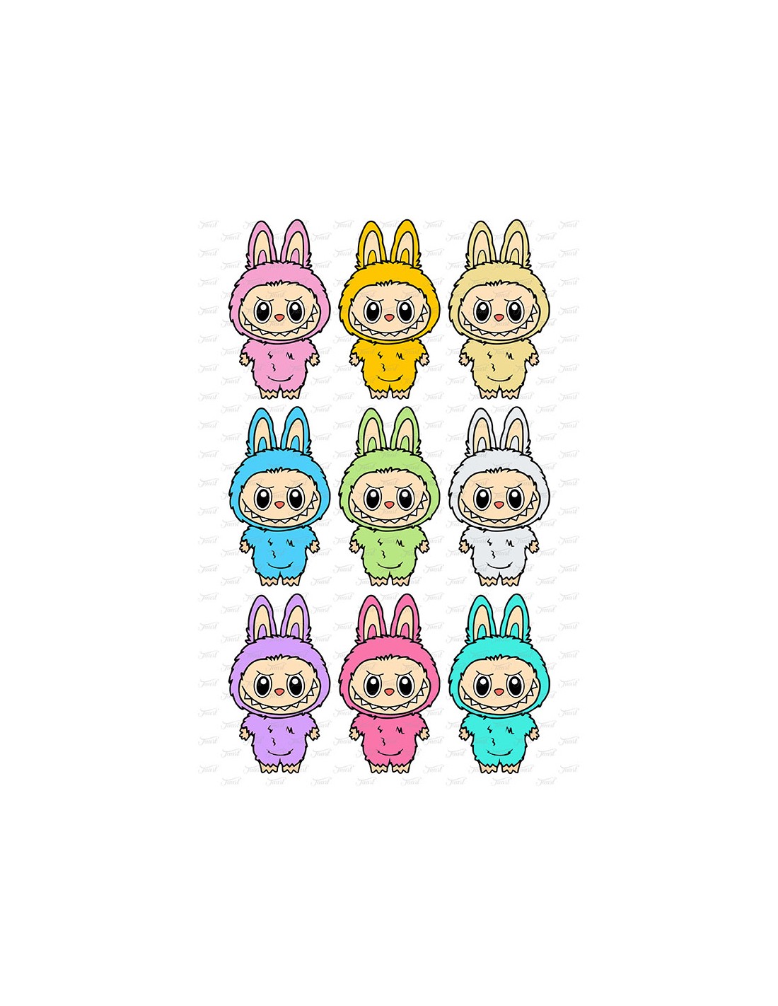9 Labubu figuren op een formaat van 9 cm hoog.