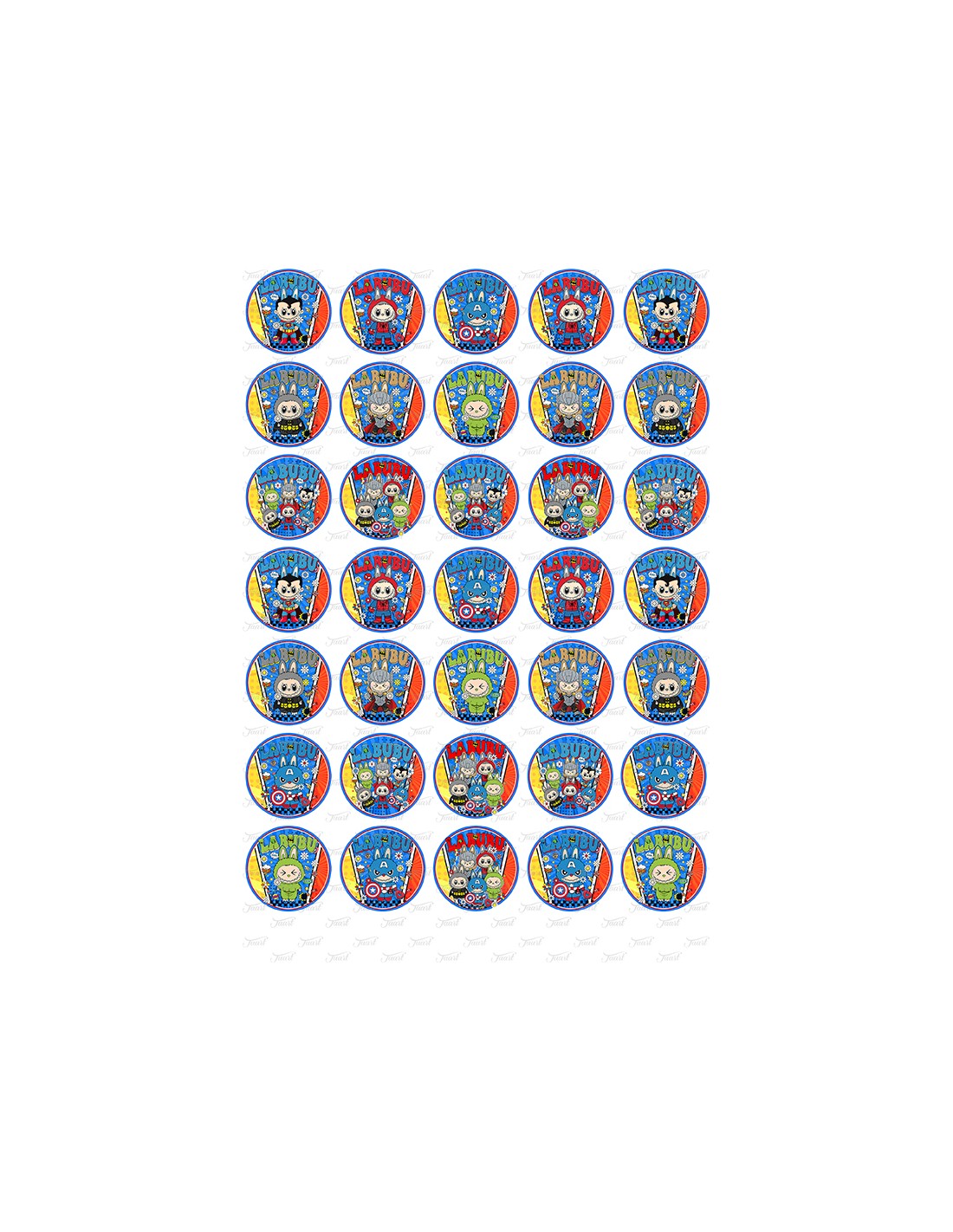 35 Labubu afbeeldingen op een mini cupake formaat van 3,5 cm doorsnede.