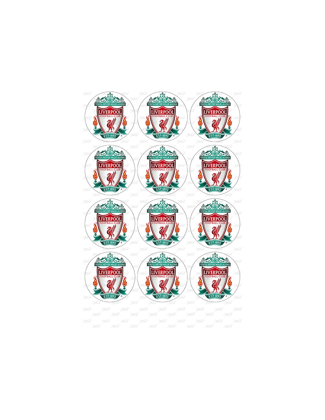 12 afbeeldingen van Liverpool op een formaat van 6 cm doorsnede.