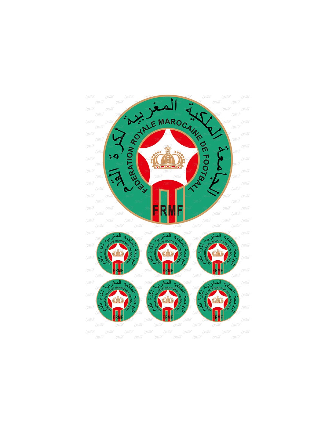 Een afbeelding van de Marokkaanse voetbalbond op een formaat van 15cm doorsnede. U ontvangt extra 6 kleine afbeeldingen van 5cm doorsnede.