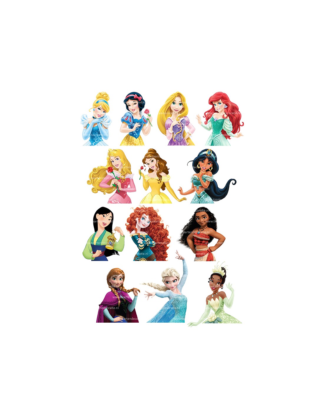 13 verschillende prinsessen welke gebruikt kunnen worden om zelf de jurk te maken. Formaat 6,5 cm hoog per prinses.