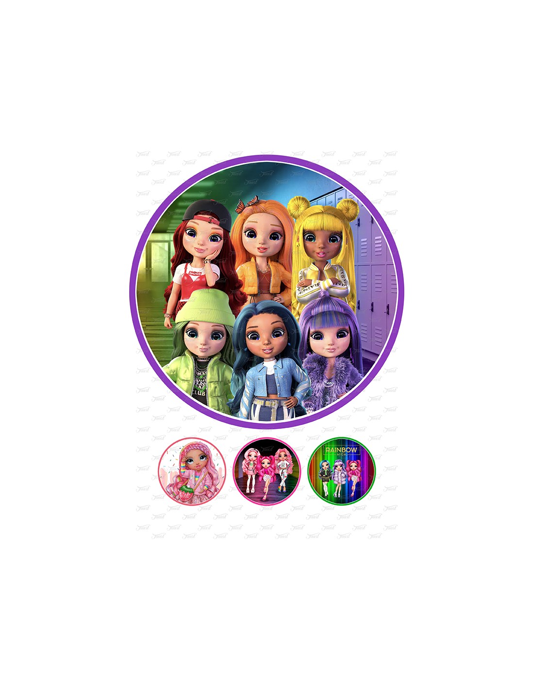Een afbeelding van Rainbow High op een formaat van 20cm doorsnede. U ontvangt extra 3 kleine afbeeldingen van 5cm doorsnede.