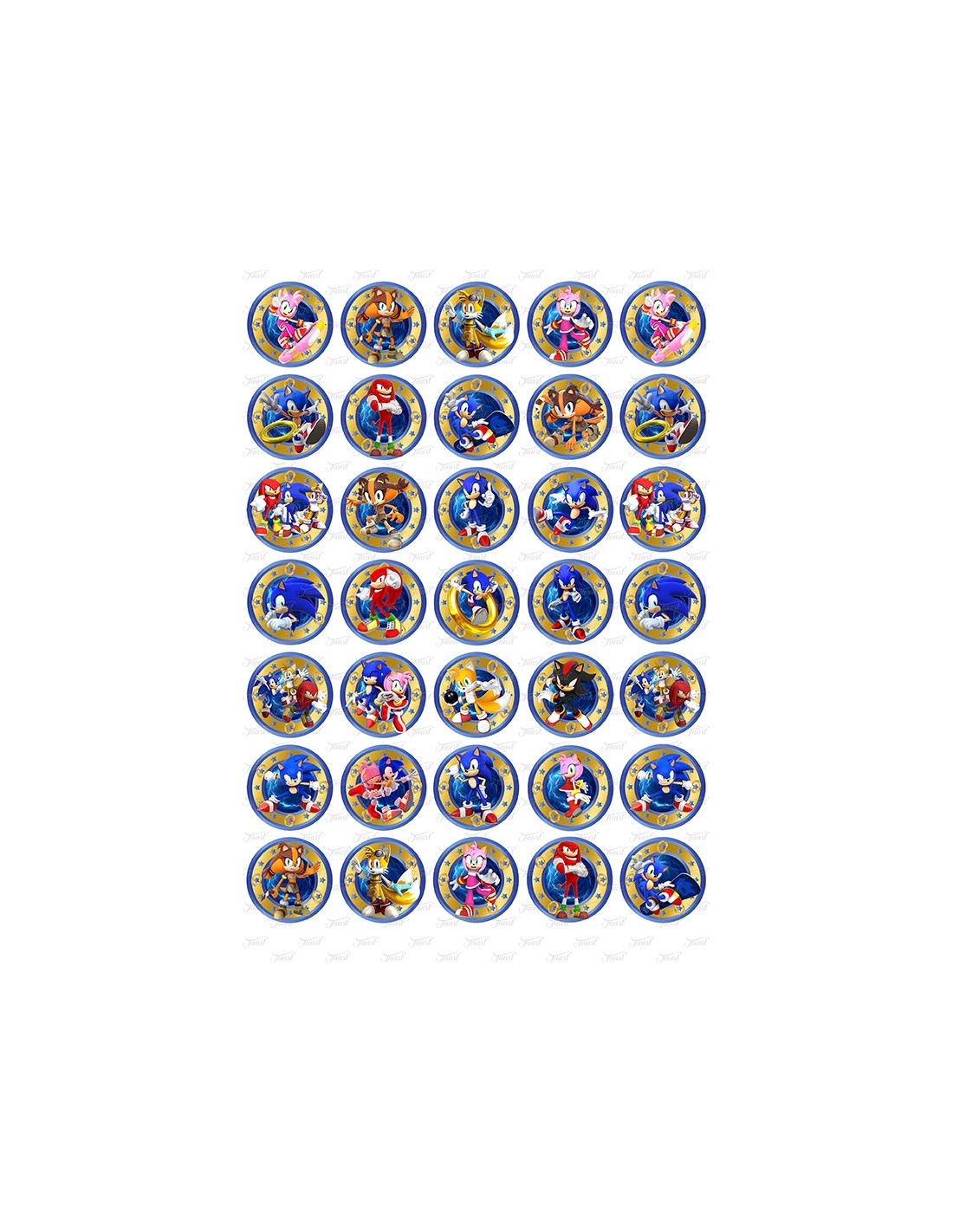 35 afbeeldingen van Sonic the Hedgehog op mini cupcakeformaat van 3,5cm. Geschikt voor mini cupcakes.