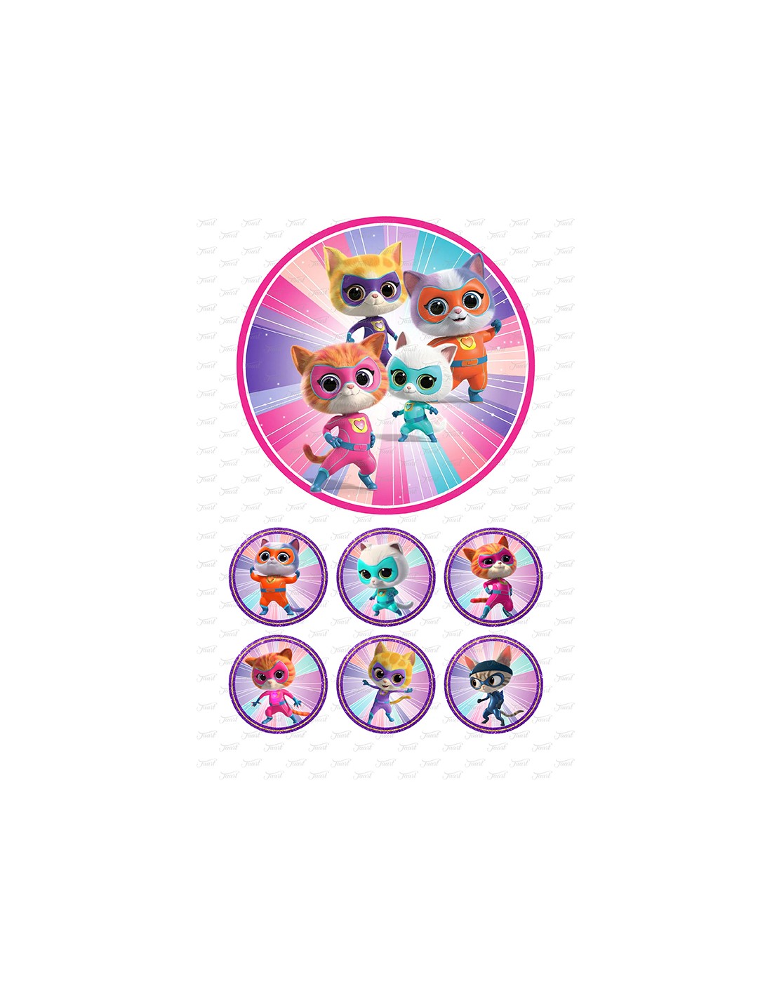 Een afbeelding van Super Katjes op een formaat van 15cm doorsnede. U ontvangt extra 6 kleine afbeeldingen van 5cm doorsnede.