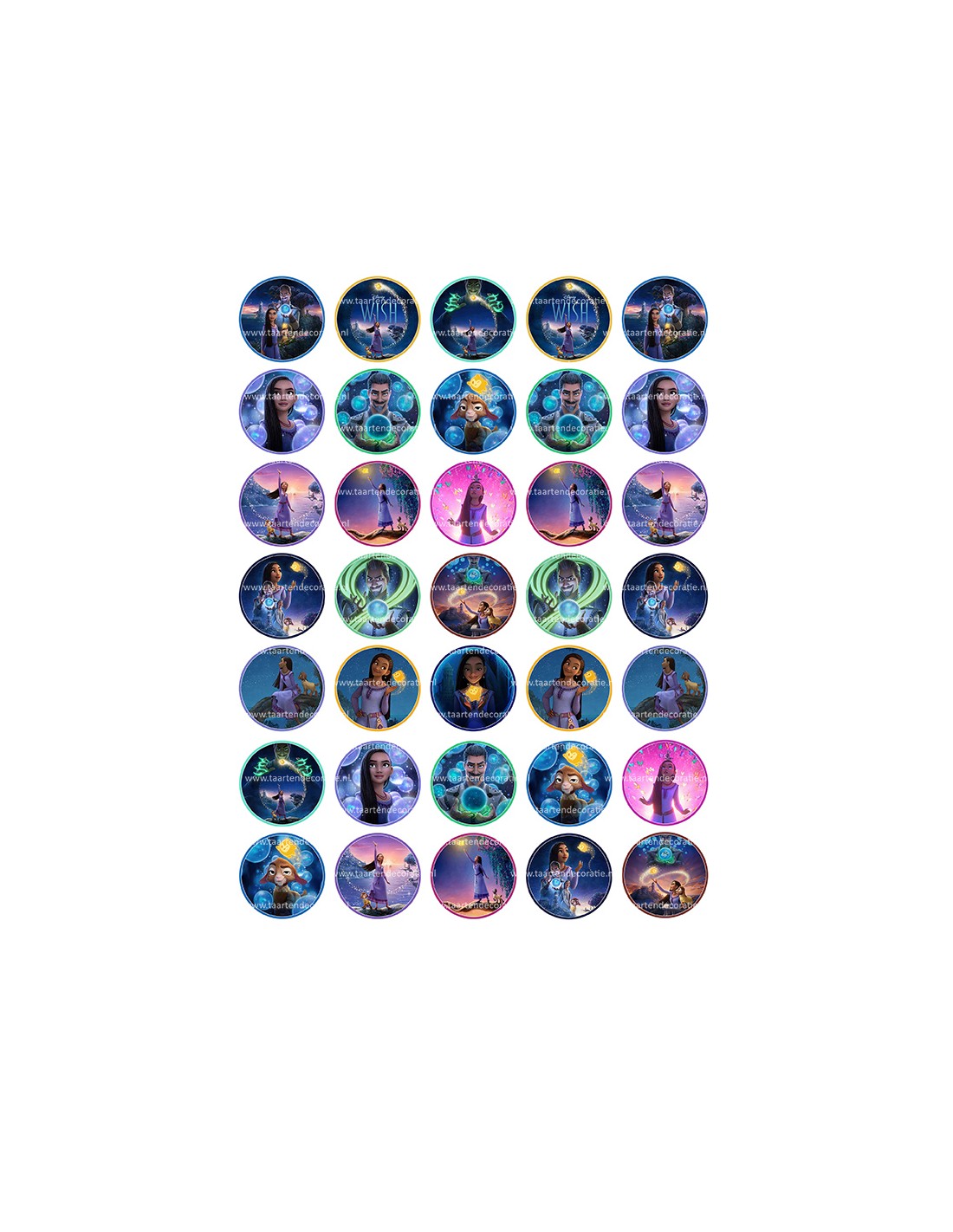 35 afbeeldingen van Wish op een cupcakeformaat van 3,5cm doorsnede.