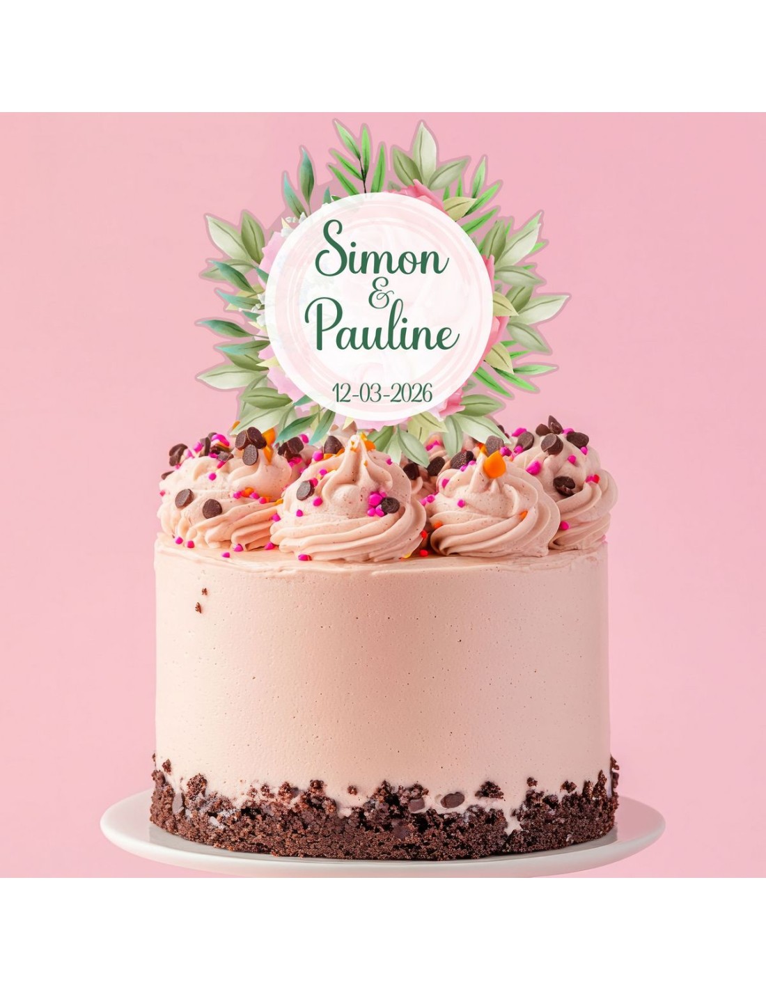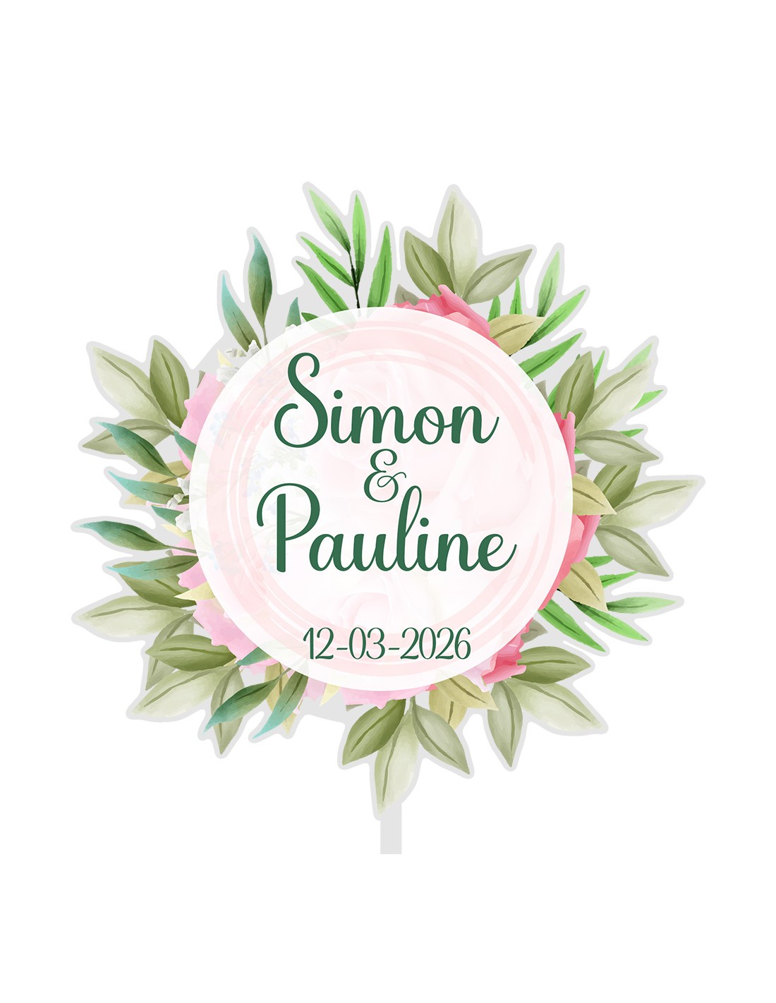 Full Colour Taarttopper op Maat: Bloem & Blad 1
