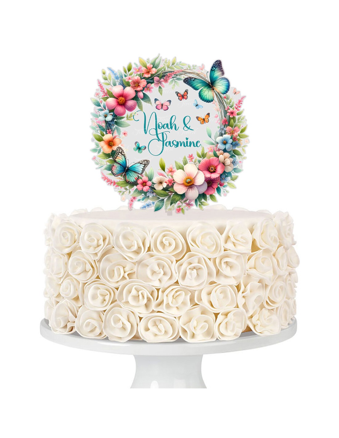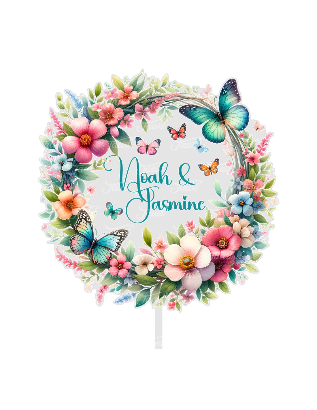 Full Colour Taarttopper op Maat: Bloemen & Vlinders 1