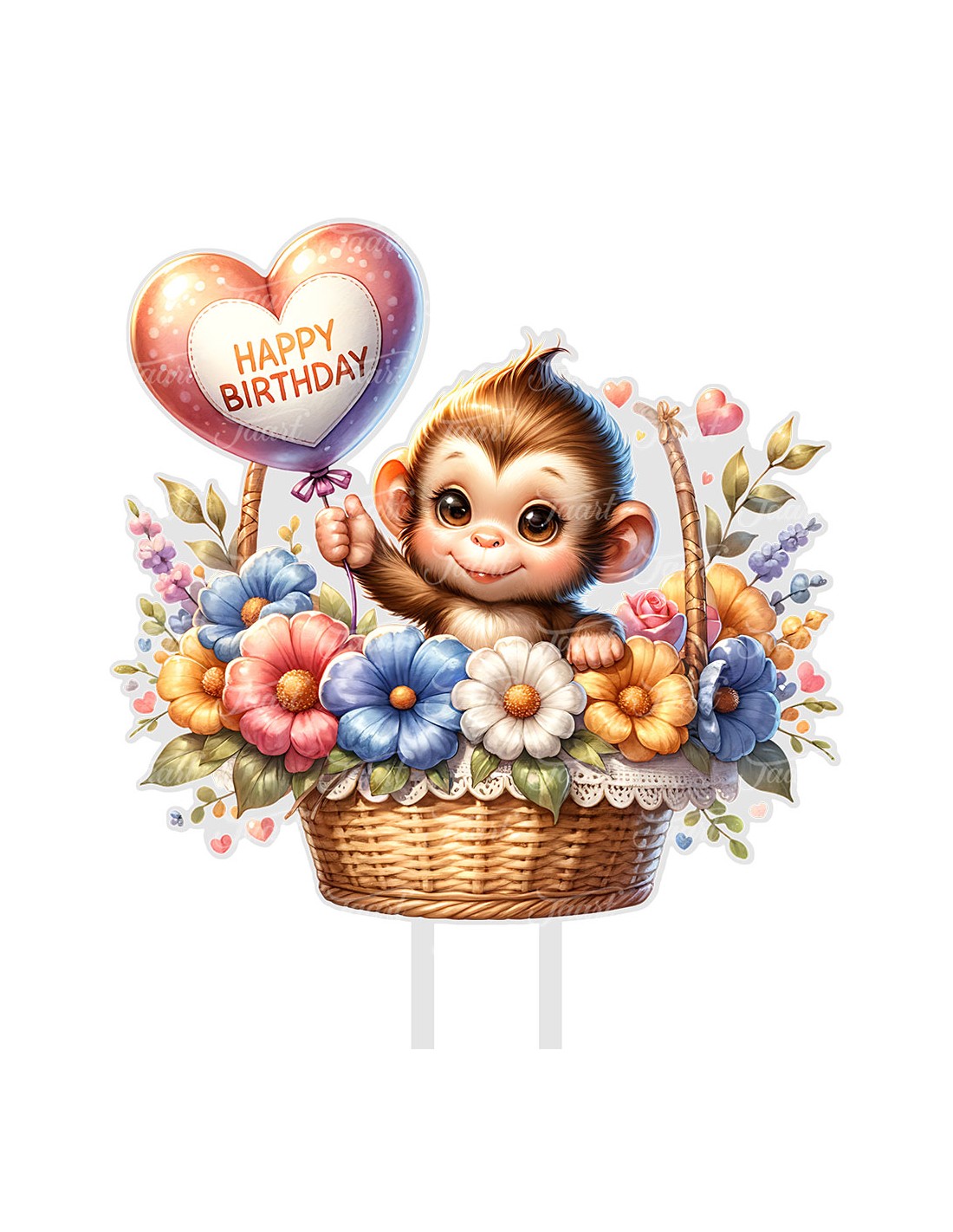 Full Colour Taarttopper op Maat: Happy Birthday Aap