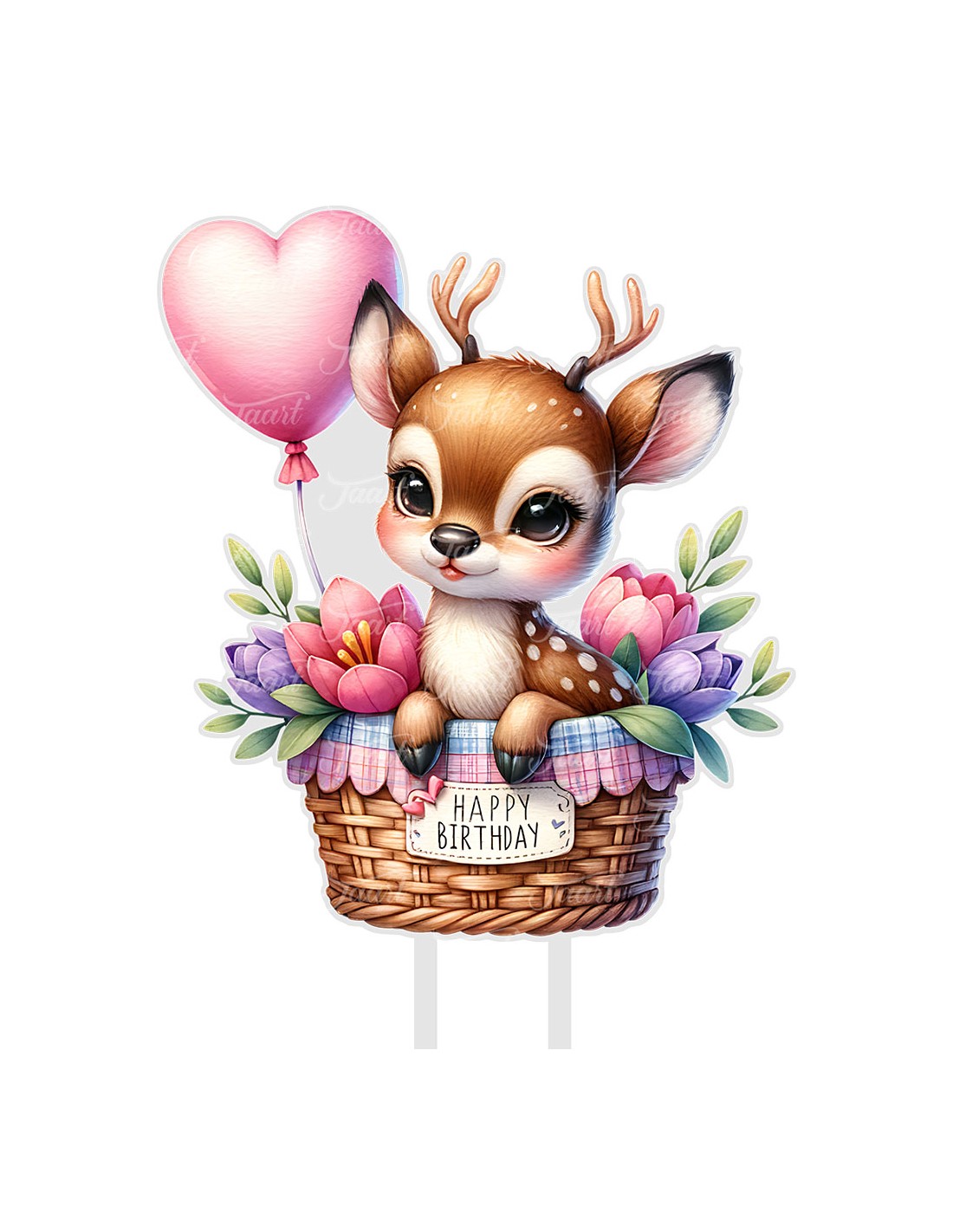 Een unieke full-colour taarttopper met een schattig hertje Met onze bijzondere printtechniek printen we uw ontwerp direct op lasergesneden transparant acryl of op berkenhout. De gebruikte inkt is krasvast en verkleurd niet. Acryl wordt aan de achterzijde geprint om een perfecte glans te garanderen. Hout is de juiste keuze voor rustiek resultaat. Hout printen we aan de voorzijde.