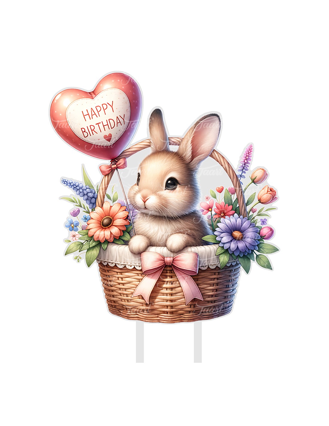 Full Colour Taarttopper op Maat: Happy Birthday Konijn