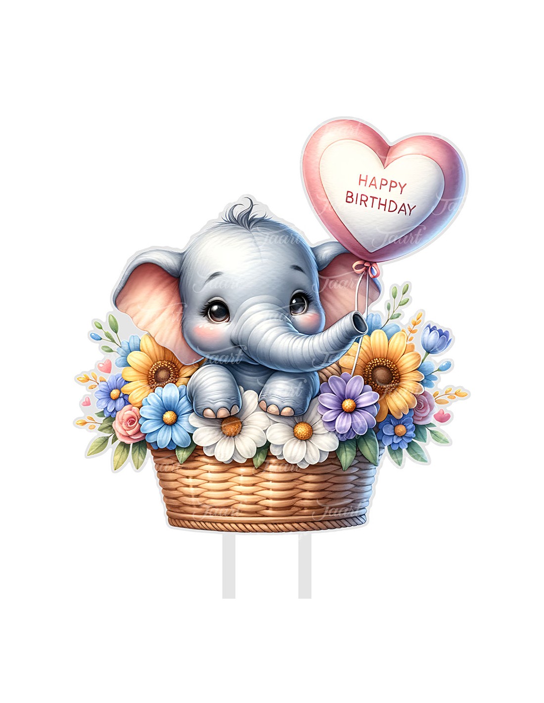 Full Colour Taarttopper op Maat: Happy Birthday Olifant