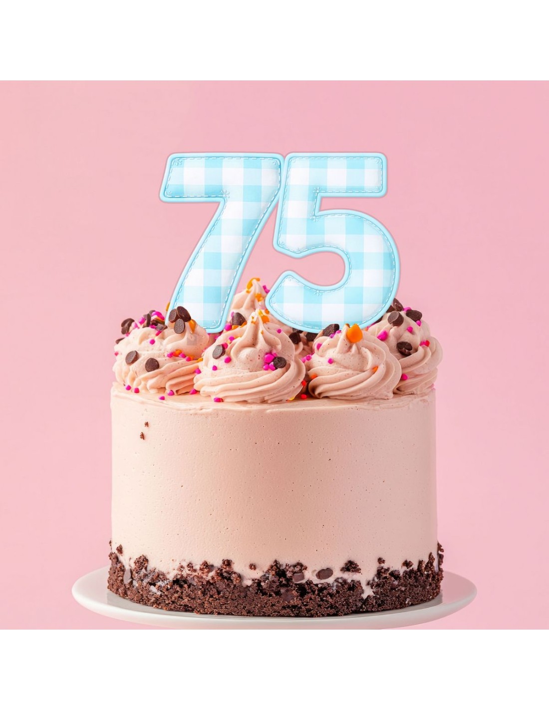 Full Colour Taarttopper op Maat: Ruit Blauw - Cijfers Dubbel